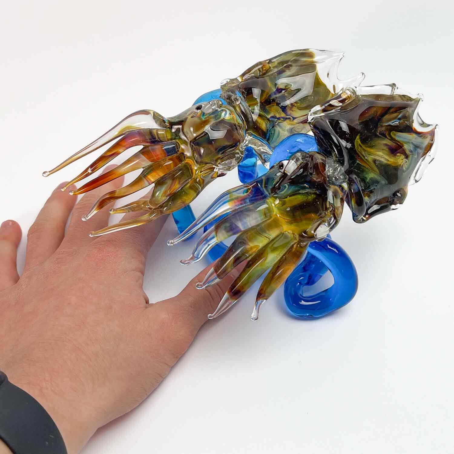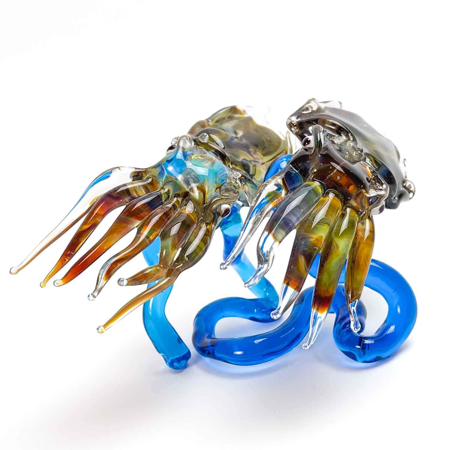 Crafted with precision and care, these two glass Cuttlefish embody the captivating beauty of the sea. Immerse yourself in a world of Venetian art and elevate your decor with these unique Murano treasures. Perfect for collectors and lovers of the sea.