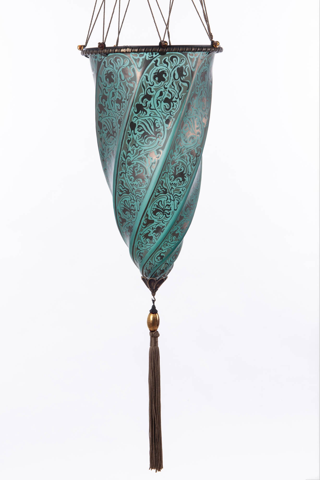 The decorations of the lamps have been obtained from the designs of the lamps exhibited at the MARIANO FORTUNY MADRAZO museum exhibited in the homonymous museum at Palazzo Orfei in Venice.