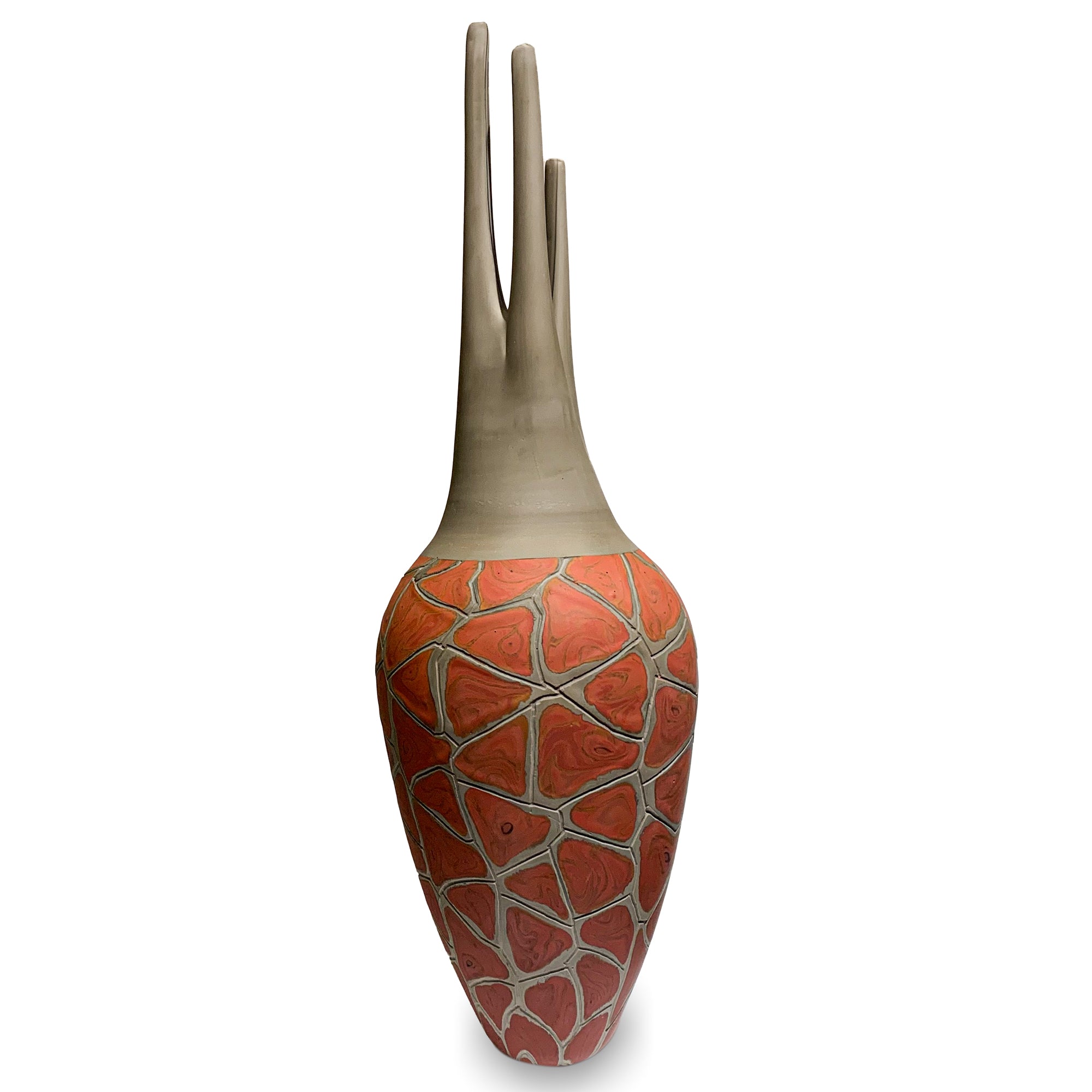The peculiarity that makes this vase a virtuous piece is the presence of three mouths.