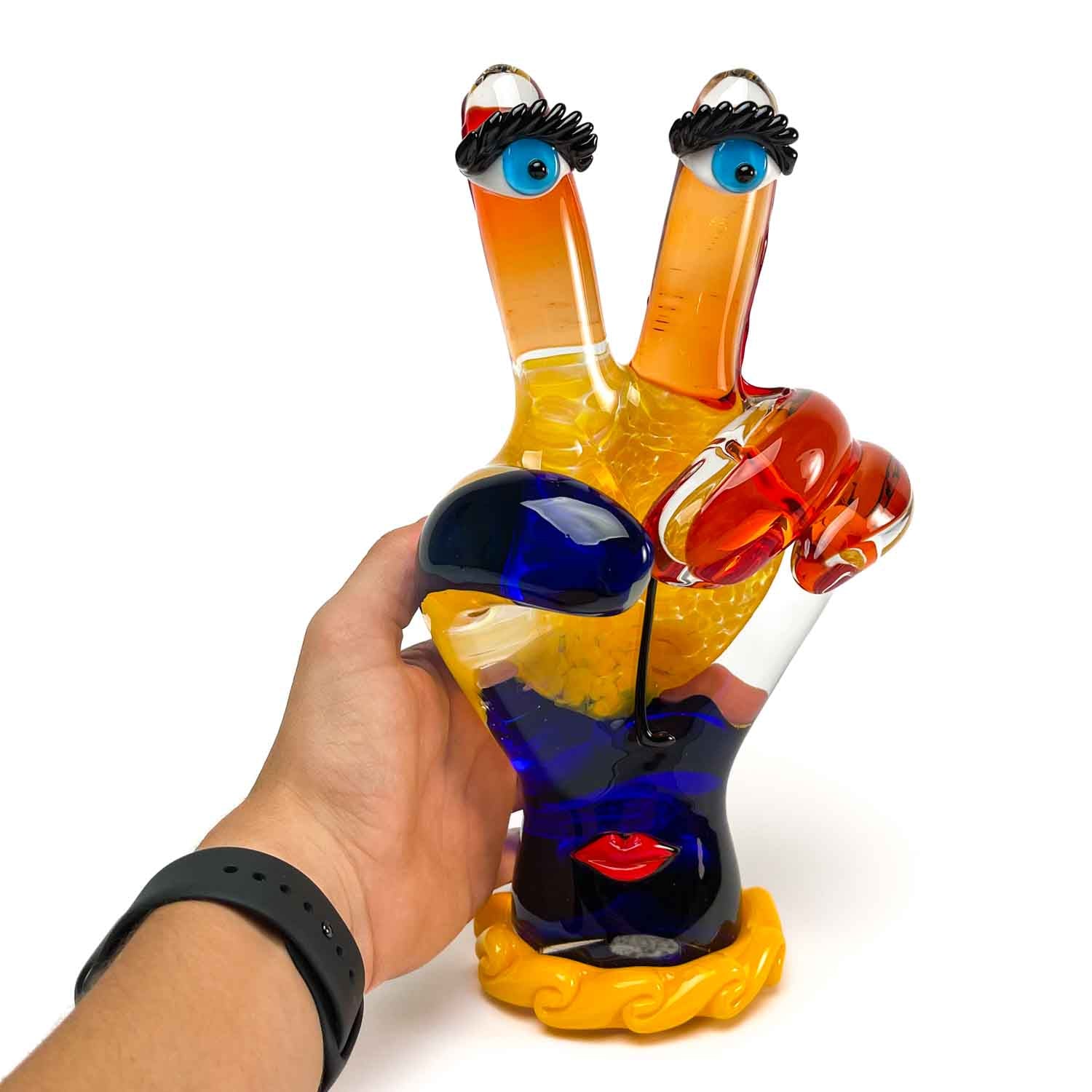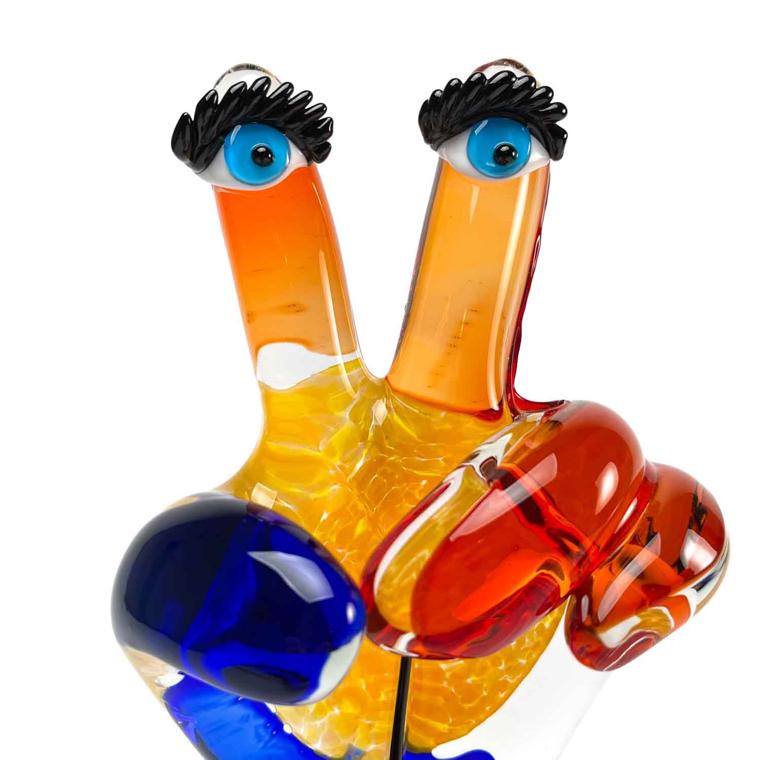 Unique and expressive gift idea that is sure to impress. This stunning Murano glass sculpture made with the Sbruffi technique, featuring a colorful and playful depiction of the middle finger emoji. Handcrafted by skilled artisans, this piece is a true work of art that showcases the beauty and skill of Murano glassmaking. With its bold and irreverent design, it's perfect for adding a touch of humor and personality to any home or office decor. Whether you are buying for a friend, family member or colleague, this sculpture is sure to make a memorable and unforgettable impression.