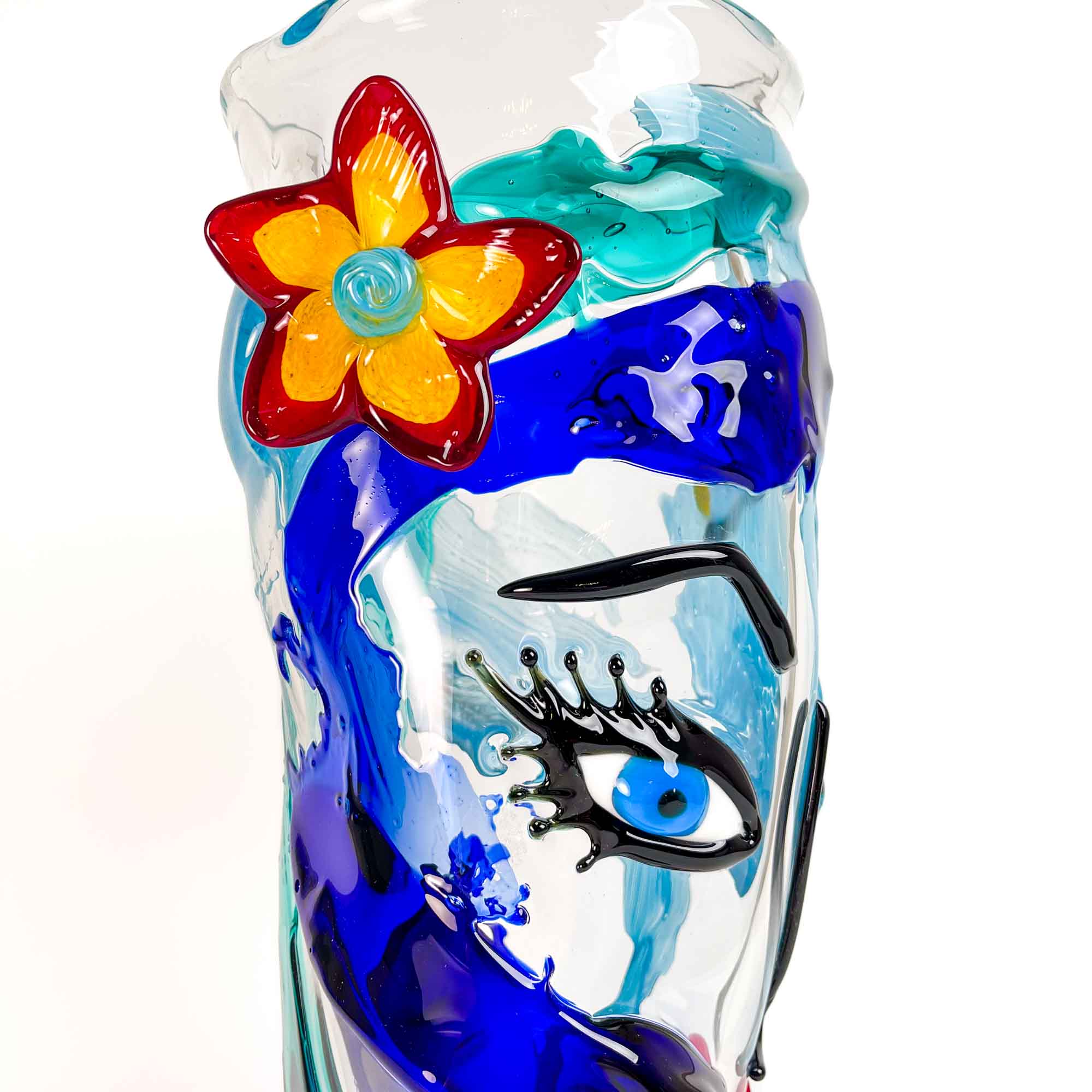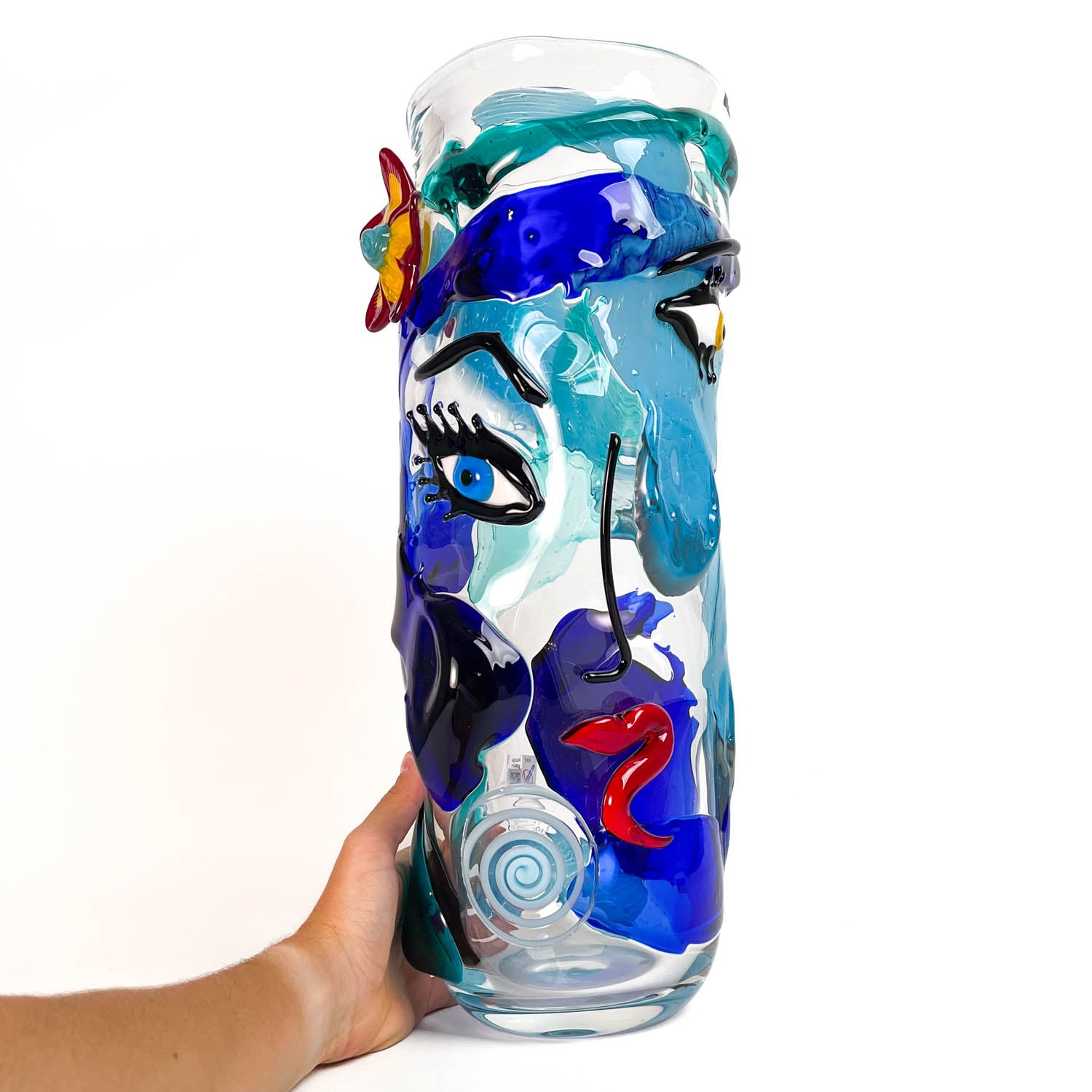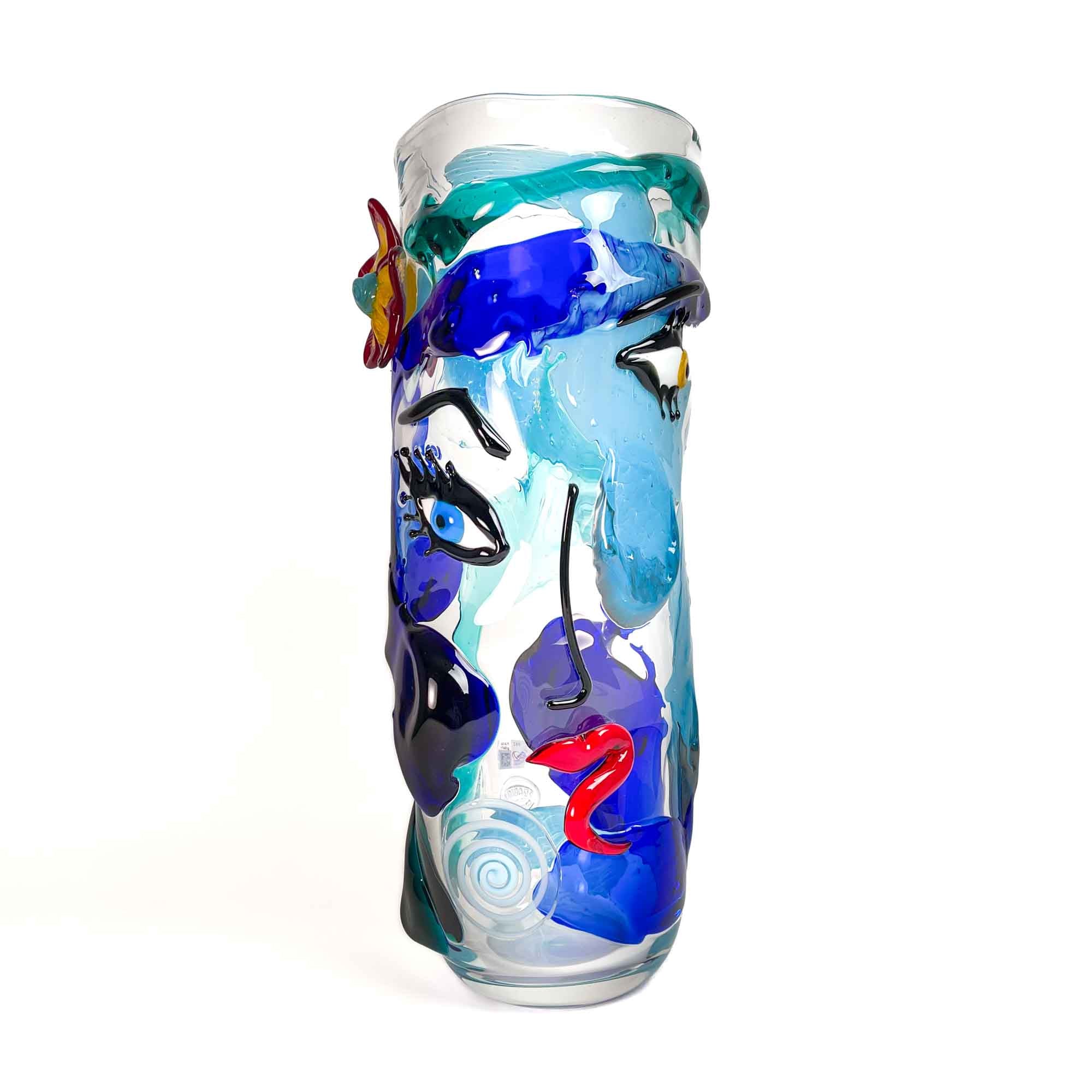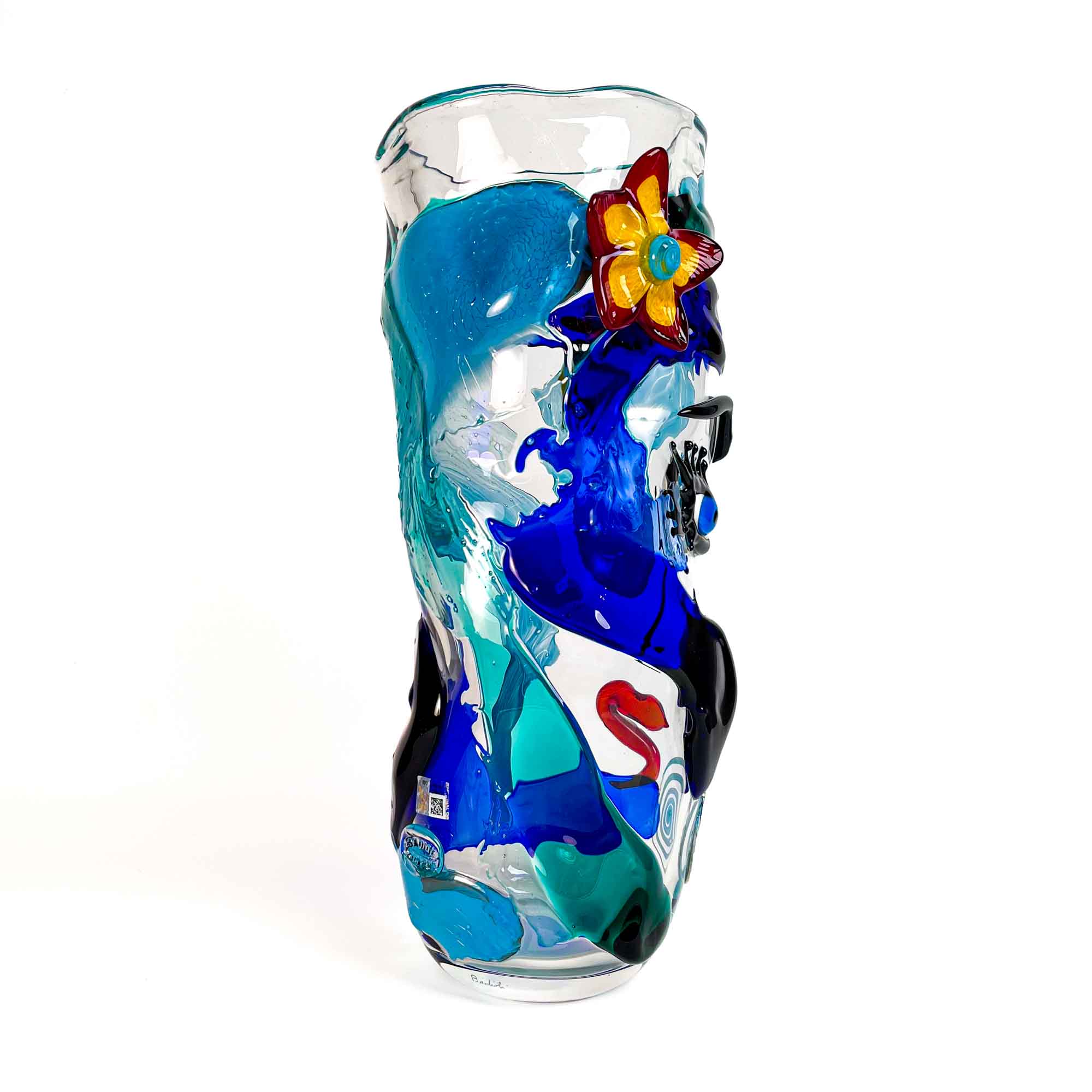 This contemporary vase represents a perfect fusion of the tradition the timeless elegance of Murano hand-blown glass and the artistic influence of one of the greatest masters of the 20th century, Pablo Picasso. Each piece is a unique and unrepeatable creation, made with love and skill by the renowned Murano master glassmaker, who carries on a centuries-old tradition with great passion.