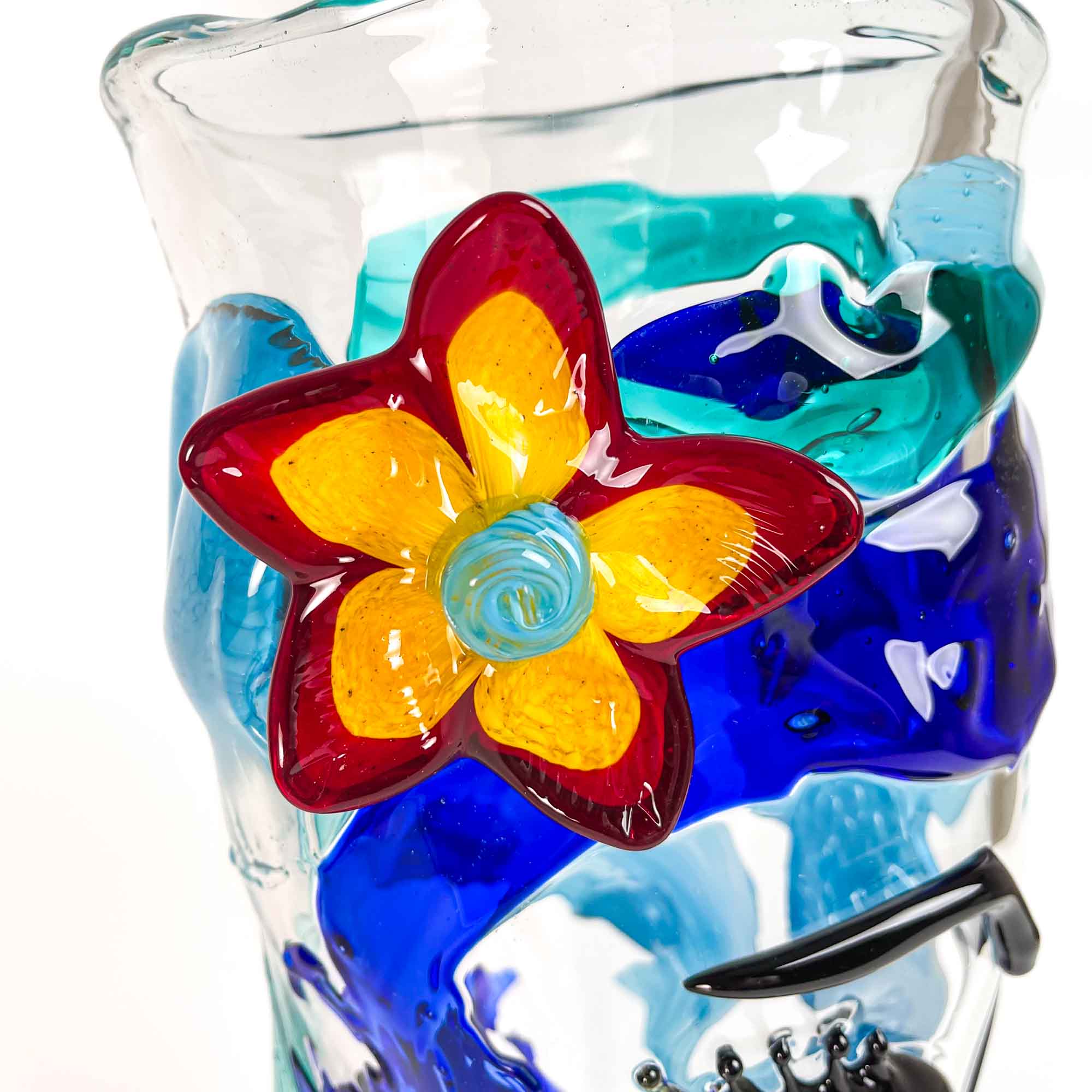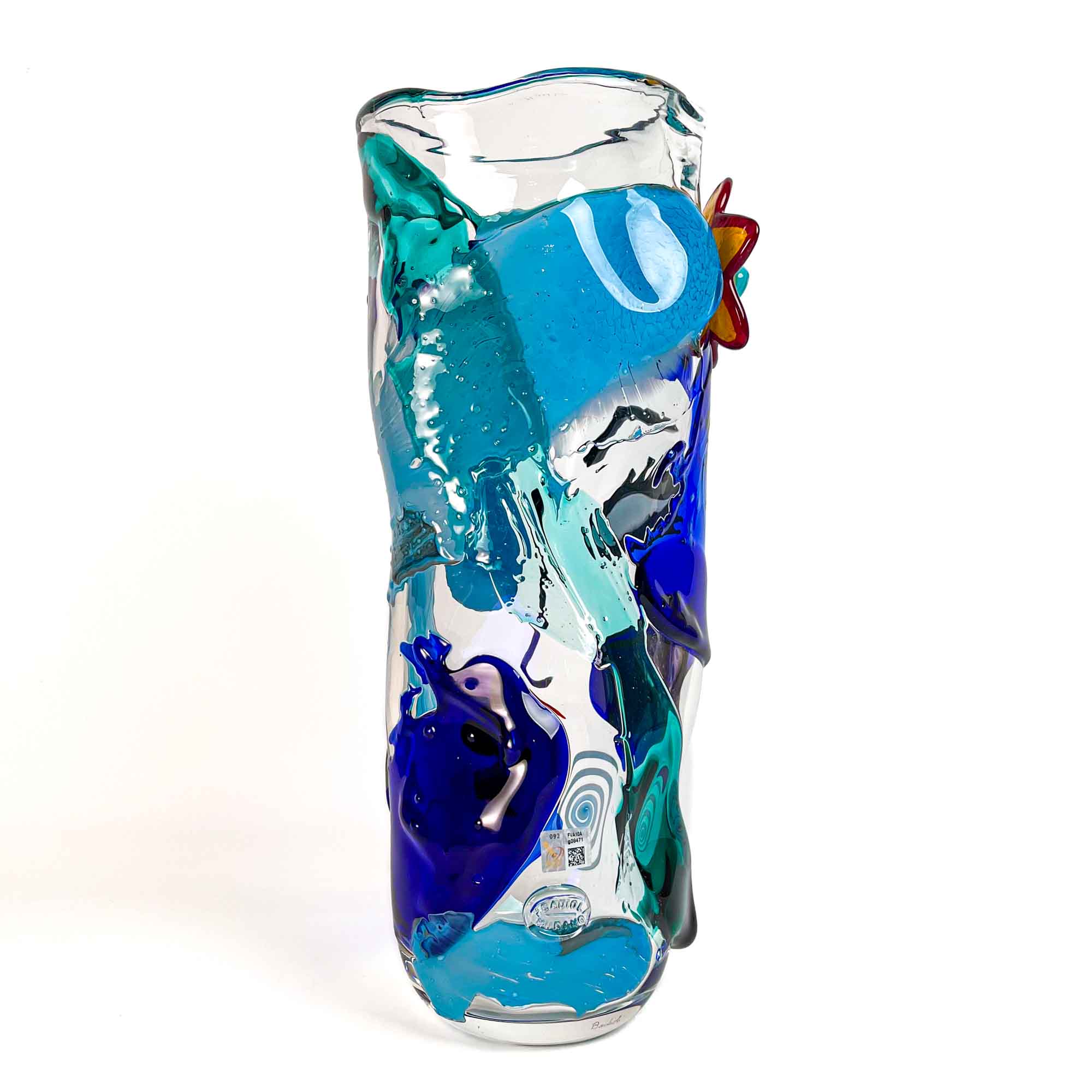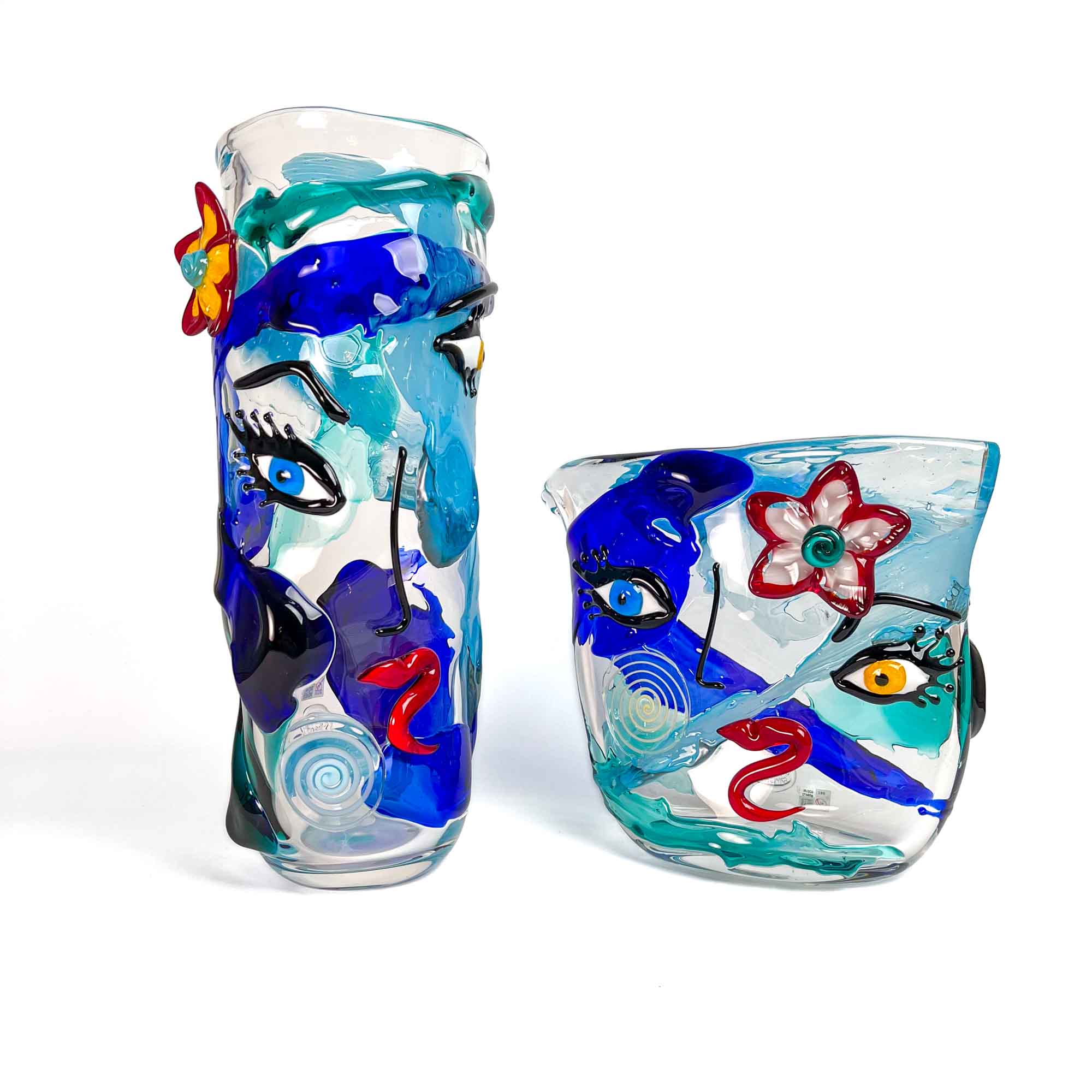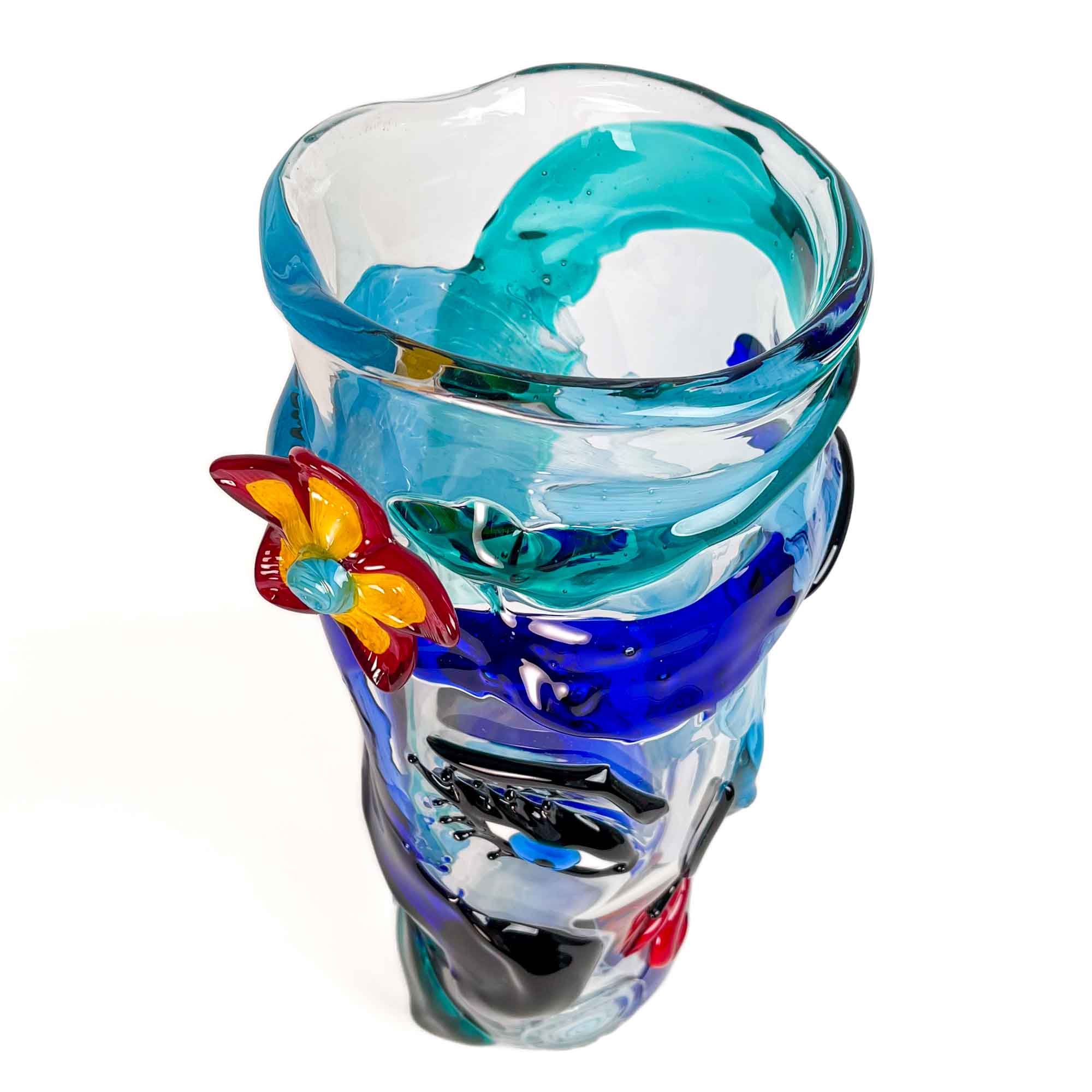 This contemporary vase represents a perfect fusion of the tradition the timeless elegance of Murano hand-blown glass and the artistic influence of one of the greatest masters of the 20th century, Pablo Picasso. Each piece is a unique and unrepeatable creation, made with love and skill by the renowned Murano master glassmaker, who carries on a centuries-old tradition with great passion.