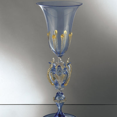 Blue tipetto goblet with gold details - blown glass made in Murano