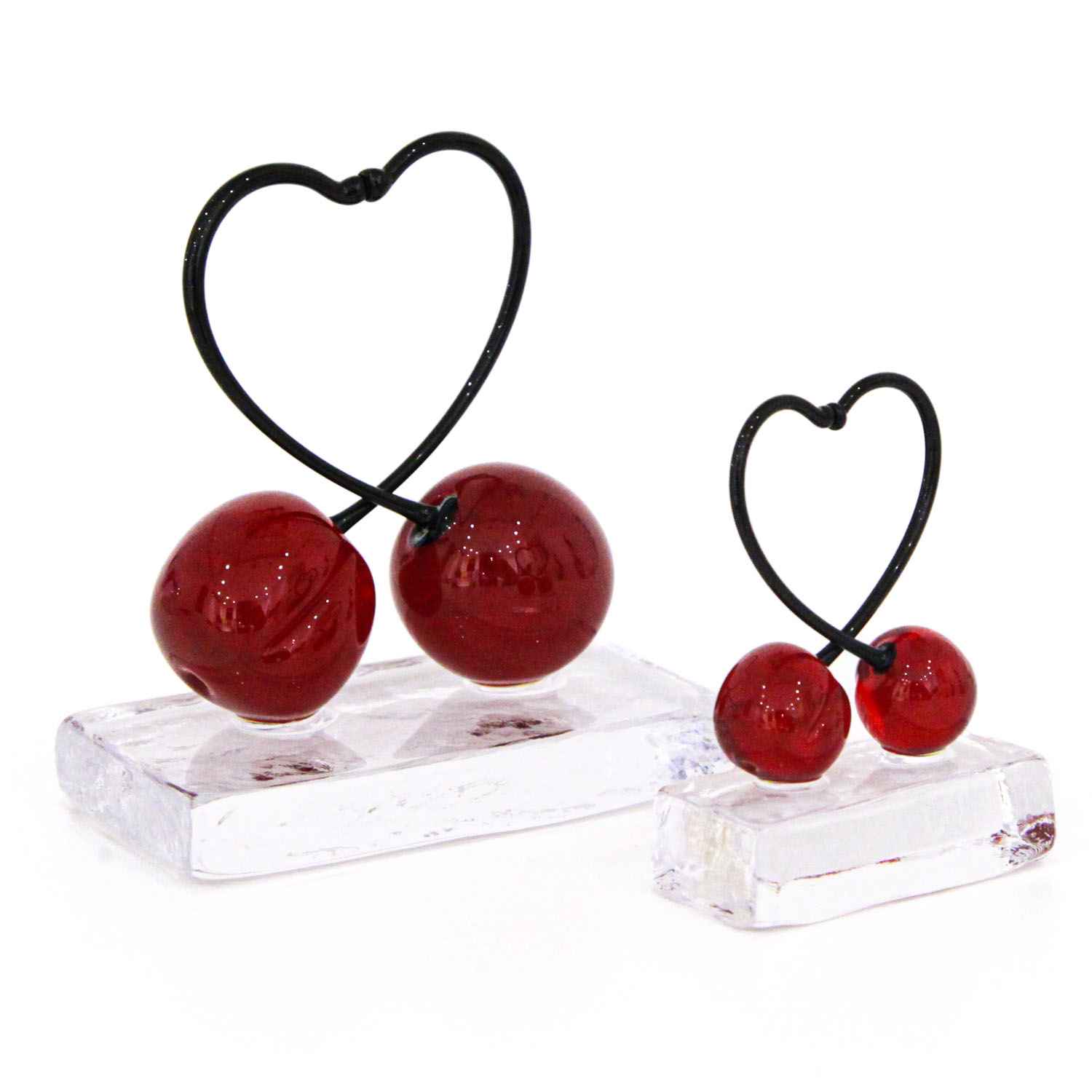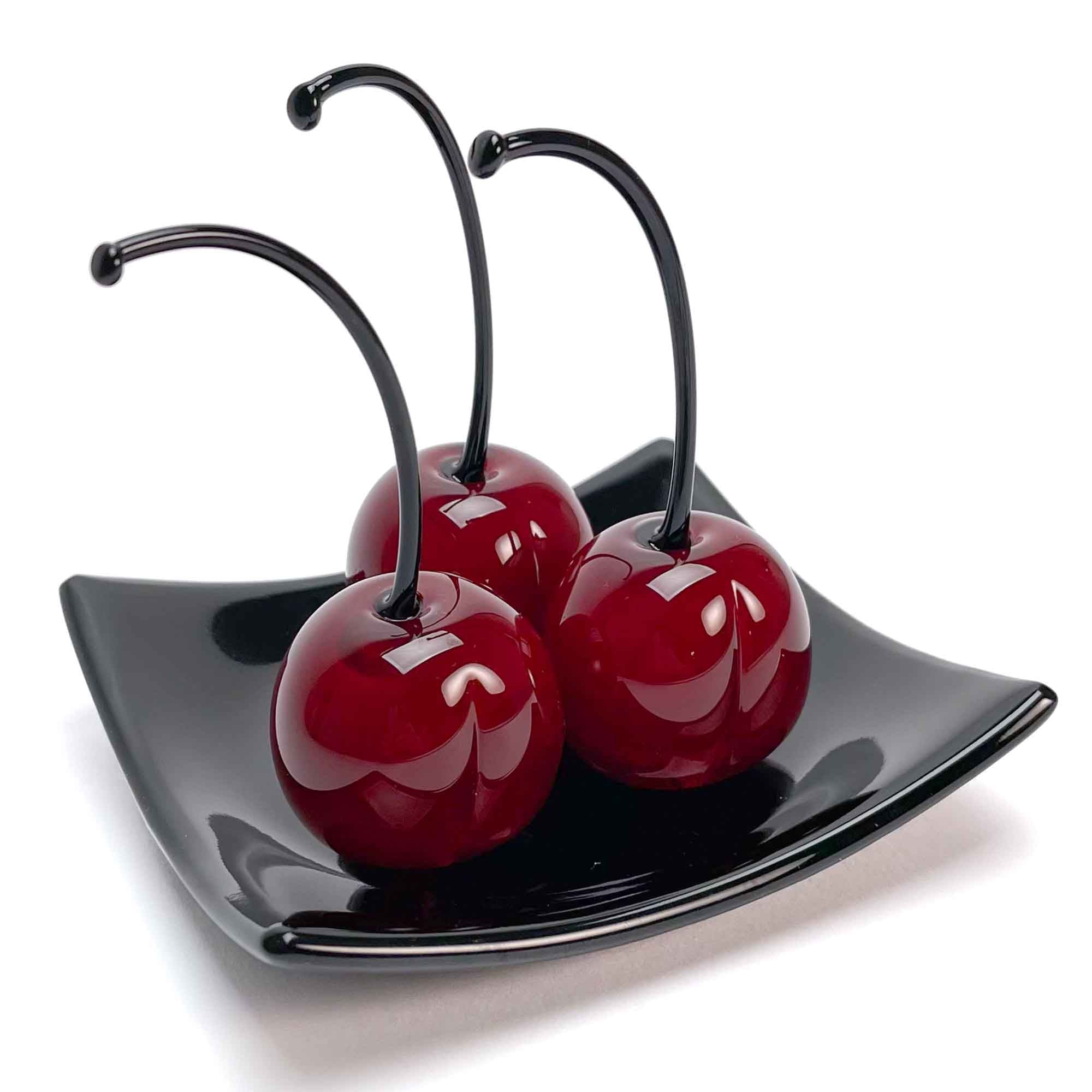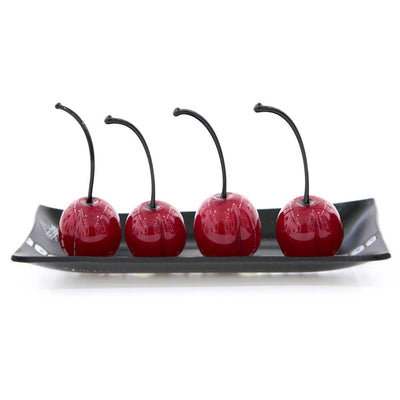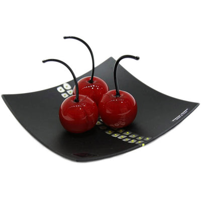Set 4 Big Cherries with Black Plate "Love and Elegance" - Murano Glass