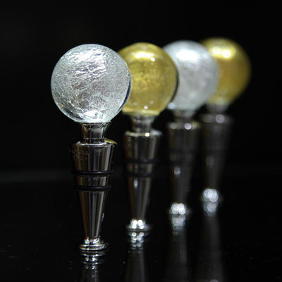 Spiral Wine Stopper with Silver Leaf - Murano Glass