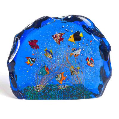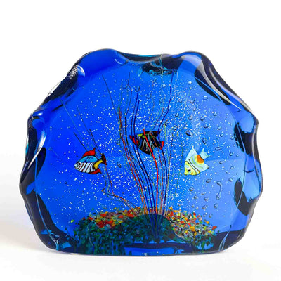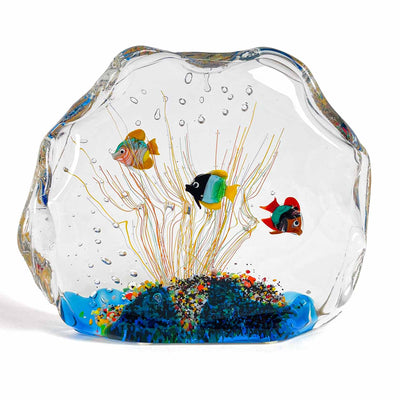 Murano glass aquariums are objects for true connoisseurs of glass art. A handmade Murano aquarium is the most refined the Murano glass technique can offer. Made in different shapes and sizes, the authentic Murano glass fish aquariums interpret the underwater world thanks to the incredible skill of the glass masters who are able to reproduce fish, water, anemones, jellyfish with great creativity and elegance. By choosing Murano glass crystal aquariums you will have a wonderful object in your home that your friends will ask you to come and see.