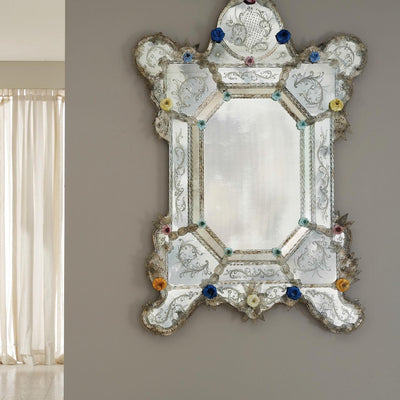 Venetian mirrors are timeless, they surpass fashions and trends, to always embellish environments with a touch of class. Today your dream of owning one comes true thanks to our offer of Murano glass mirrors, in antique or contemporary style, perfect for the modern home, which will become luxurious thanks to a mirror made entirely by skilled craftsmen. The Italian Murano glass mirrors are an authentic Made in Italy excellence. Discover our selection of Murano Venetian glass mirrors that we have made for you.