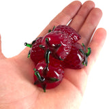 It means that a single master makes each strawberry using a light to fuse and to model sticks of colored Murano glass.
