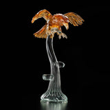 Amber Hawk in flight, made in Murano glass by hand by our glass masters, the falcon is supported by a transparent glass base.