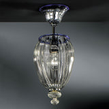 Classic pendant lamp in blown crystal with blu  decoration applied under heat.