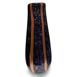 The theme of the tessellated mosaic is interrupted by two aventurine rods that run along the entire length of the vase.