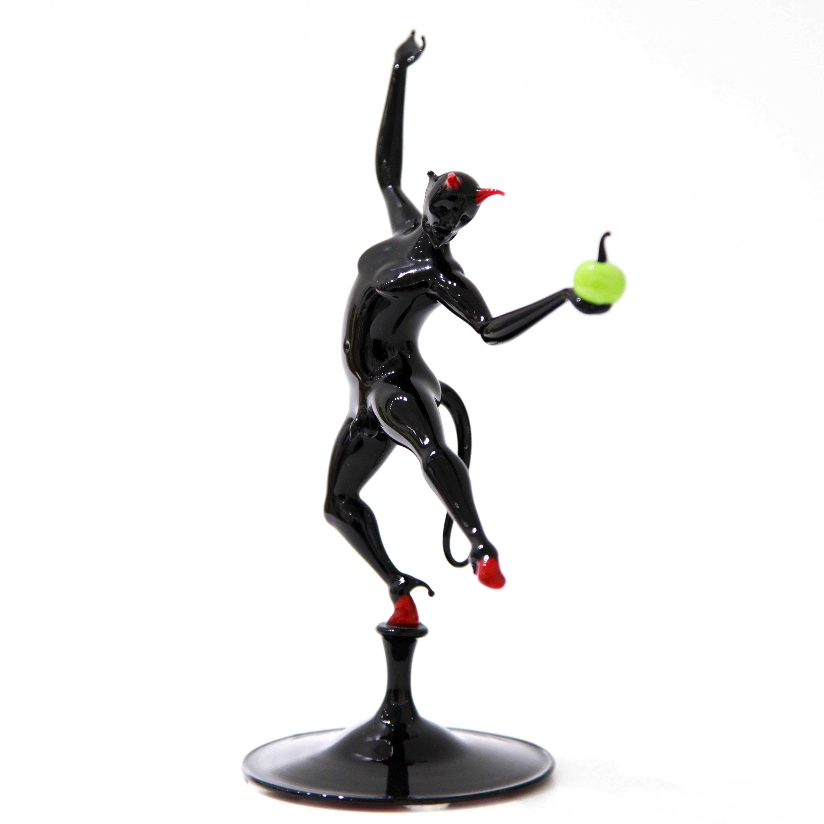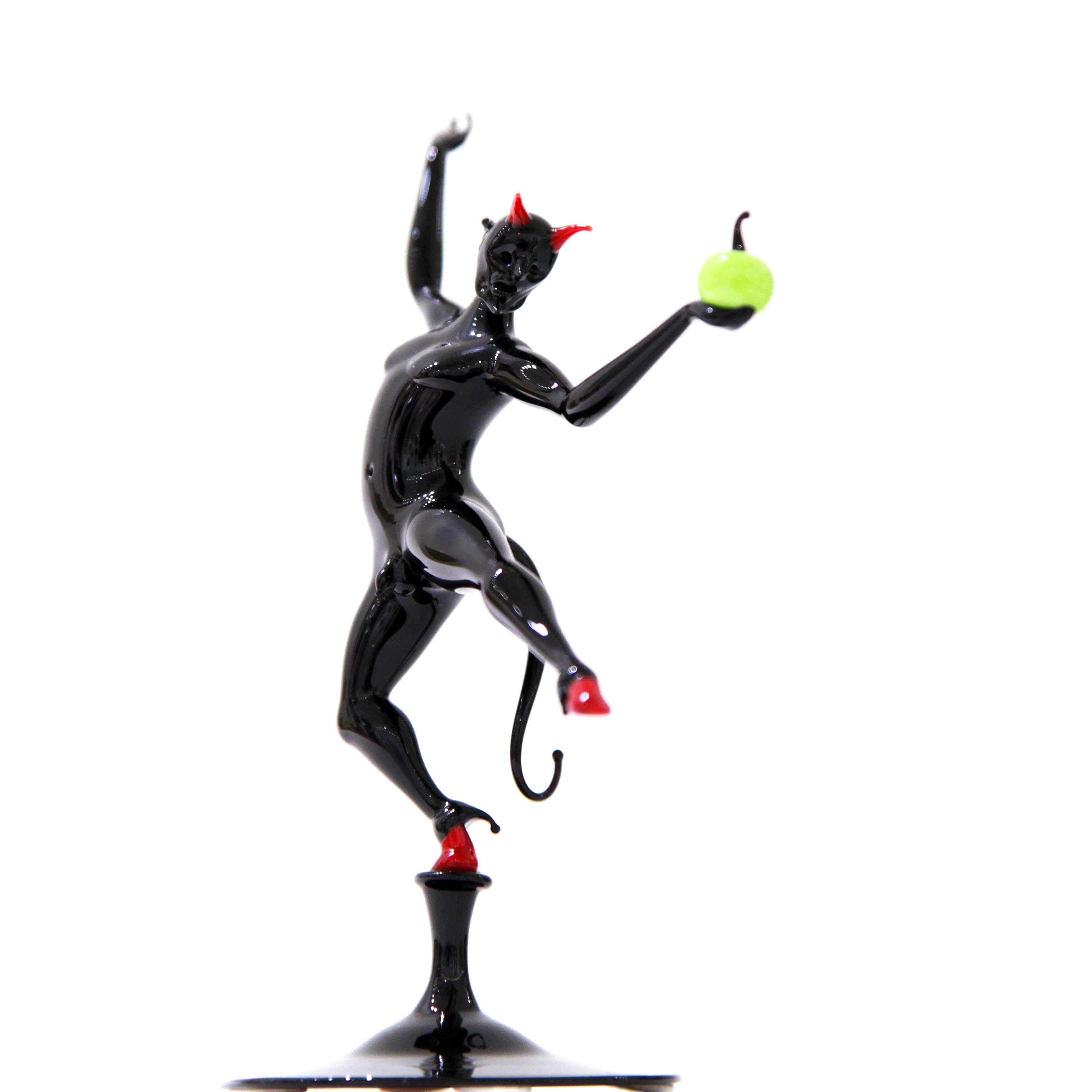 Clutching a gleaming apple, this devil playfully balances mystery and allure, reflecting the artistry and imagination Murano is renowned for.