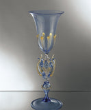 Blue tipetto goblet with gold details - blown glass made in Murano