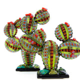 Bright green cactus in Murano blown glass. The cactus have the combination of theree techniques; blown glass, vetrofusione and murrines attached which gives the sculpre a more realistic look. This glass object is a perfect gift and a small eye-catcher in every interior.