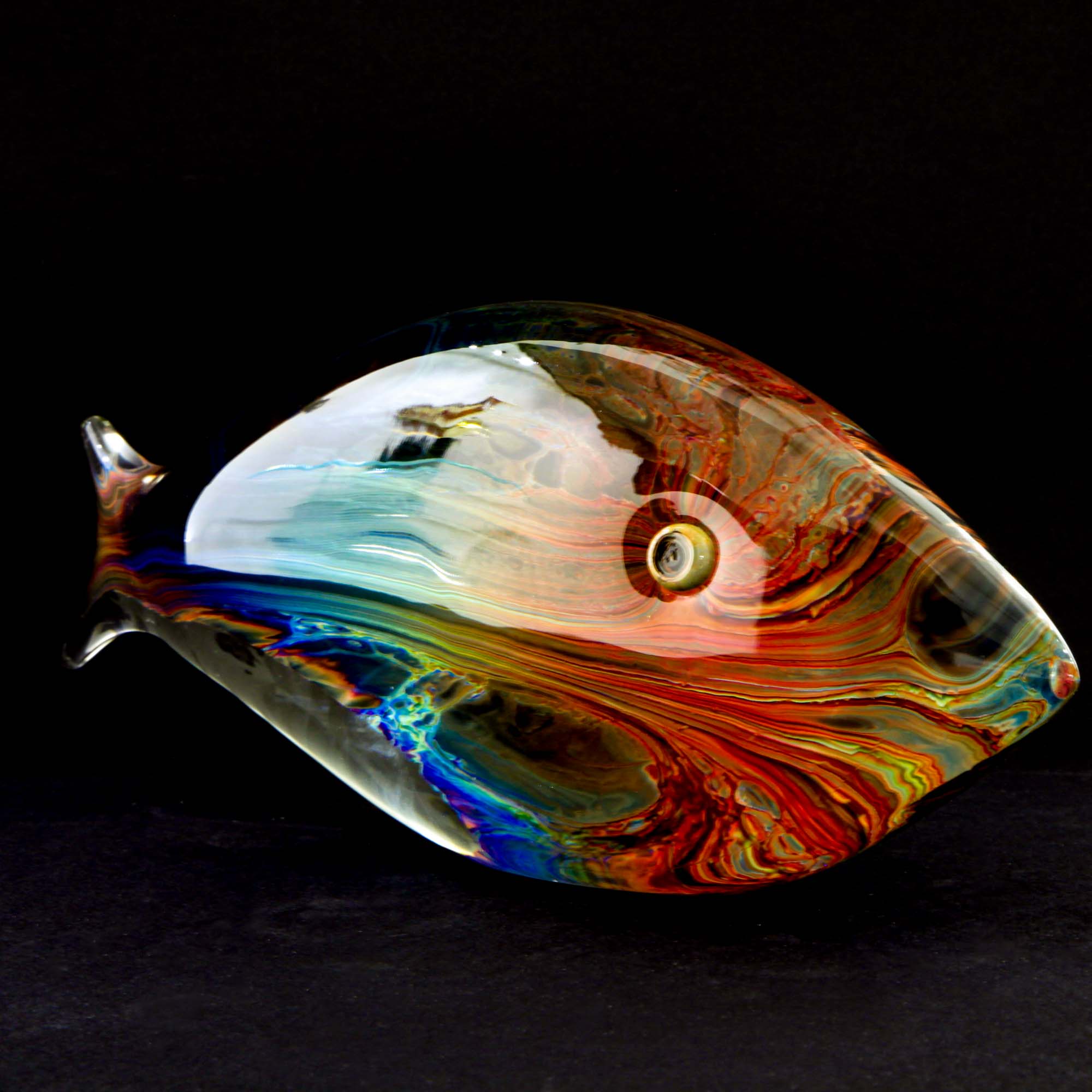 The coloring effects is obtained by adding to the molten glass a mixture based on different metal oxides; this is why we will never be able to obtain two objects exactly the same, each time the shades and veins of the colors will be different and unpredictable.