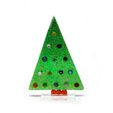 This glasswork is executed with the Vetrofusione technique or Fused Glass in english. The method involve layering thin sheets of glass, often using different colors to create patterns or simple images. The stack is then placed inside the kiln and heated until the separate pieces begin to bond together. The golden part is make with a Gold Leaf and the 'baubles' are Murrines. All these combinations of techniques make the Christmas Tree Collection very unique and valuable.