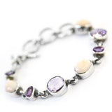 Silver coral bracelet with amethyst, pink quartz and pink coral, handmade by Gabriella Nanni in her atelier in Florence.