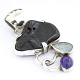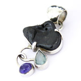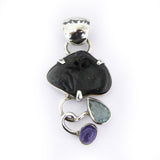 Pendant in 925 silver with Iron Fragments melted by the Etruscans, Aquamarine, Tanzanite and Freshwater Pearl.