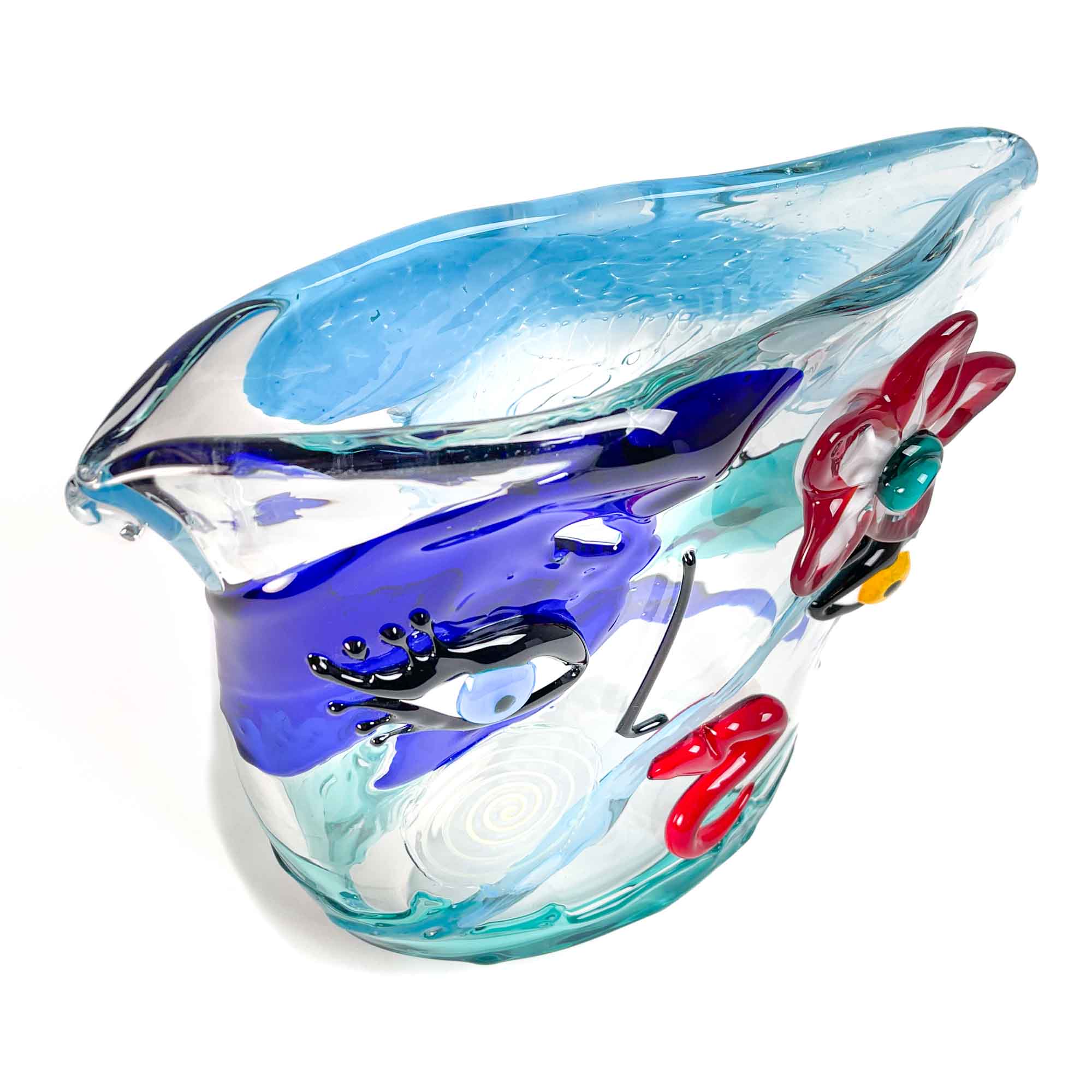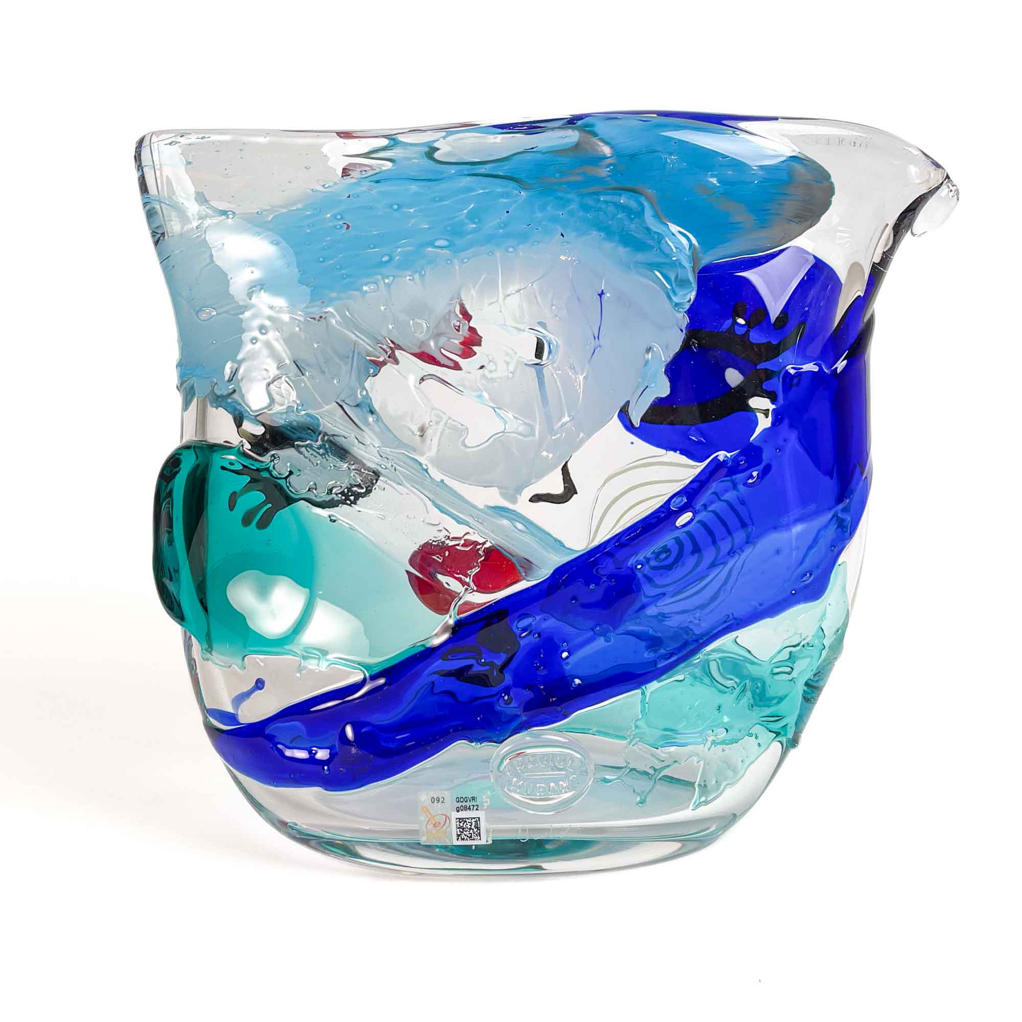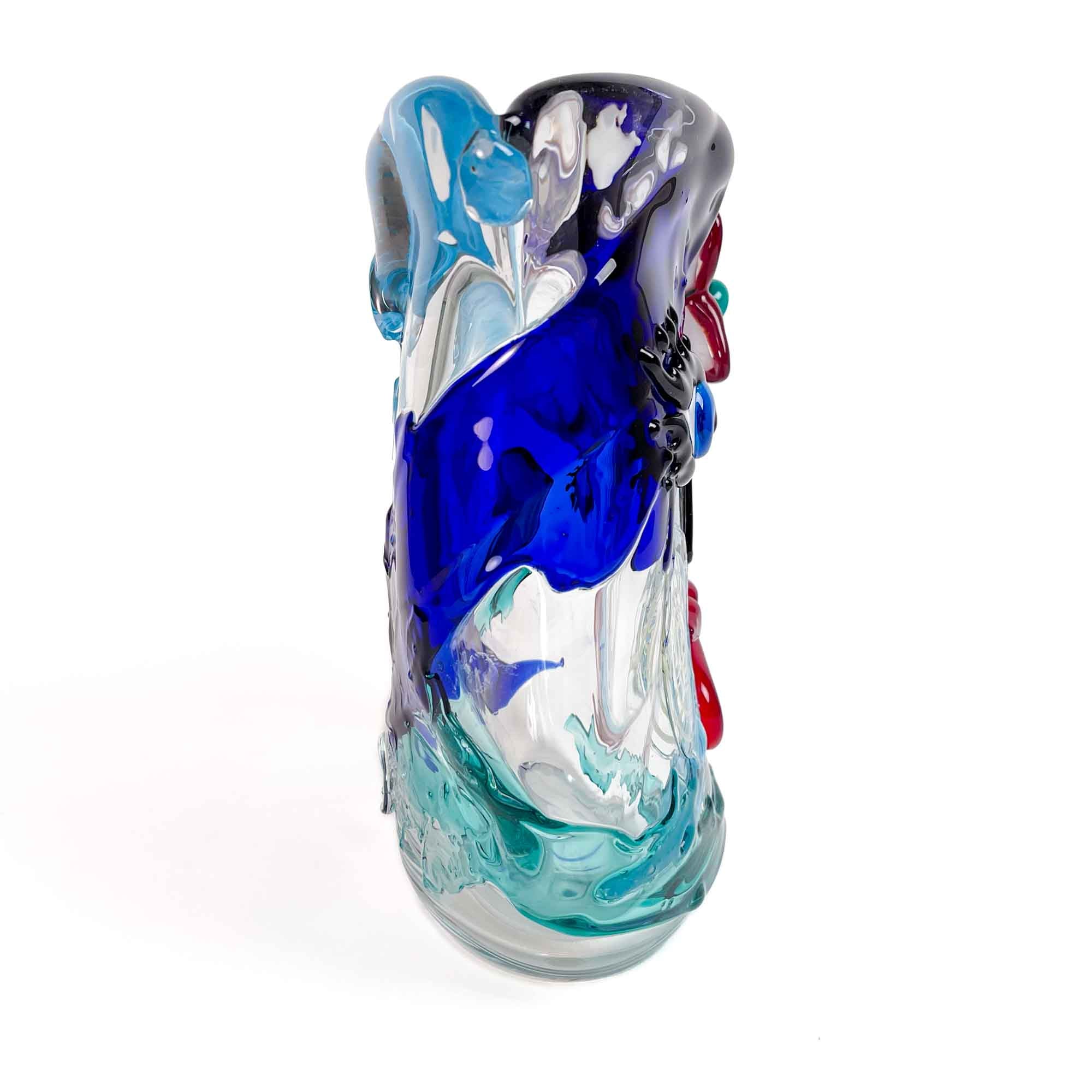 This contemporary vase represents a perfect fusion of the tradition the timeless elegance of Murano hand-blown glass and the artistic influence of one of the greatest masters of the 20th century, Pablo Picasso. Each piece is a unique and unrepeatable creation, made with love and skill by the renowned Murano master glassmaker, who carries on a centuries-old tradition with great passion.