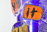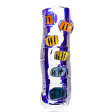 Another exciting I Lirici vase features great dimensions and vibrant colours. The indigo-blue matches perfectly the reflections given by the sunk silver leaf and the tangerine, yellow, lime and cyan rectangles. The inclusion of murrine completes this vase. Handmade in Murano by Romano Donà.