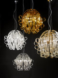 Lightness and elegance merge in this contemporary collection. The curvy ribbons create a unique and luminous Murano glass chandelier available in several colors.