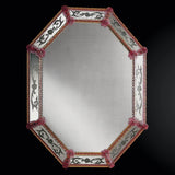 Contained and delicious mirrors showing light hand-etchings and Murano glass trims.