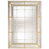 Frame, with engraved tiles in the center, made of glass with transparent mirror finish.