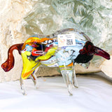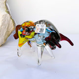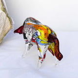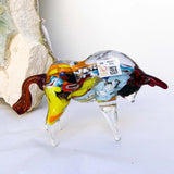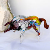 This beautiful bull is made of clear glass and splashes of colored glass layered inside.