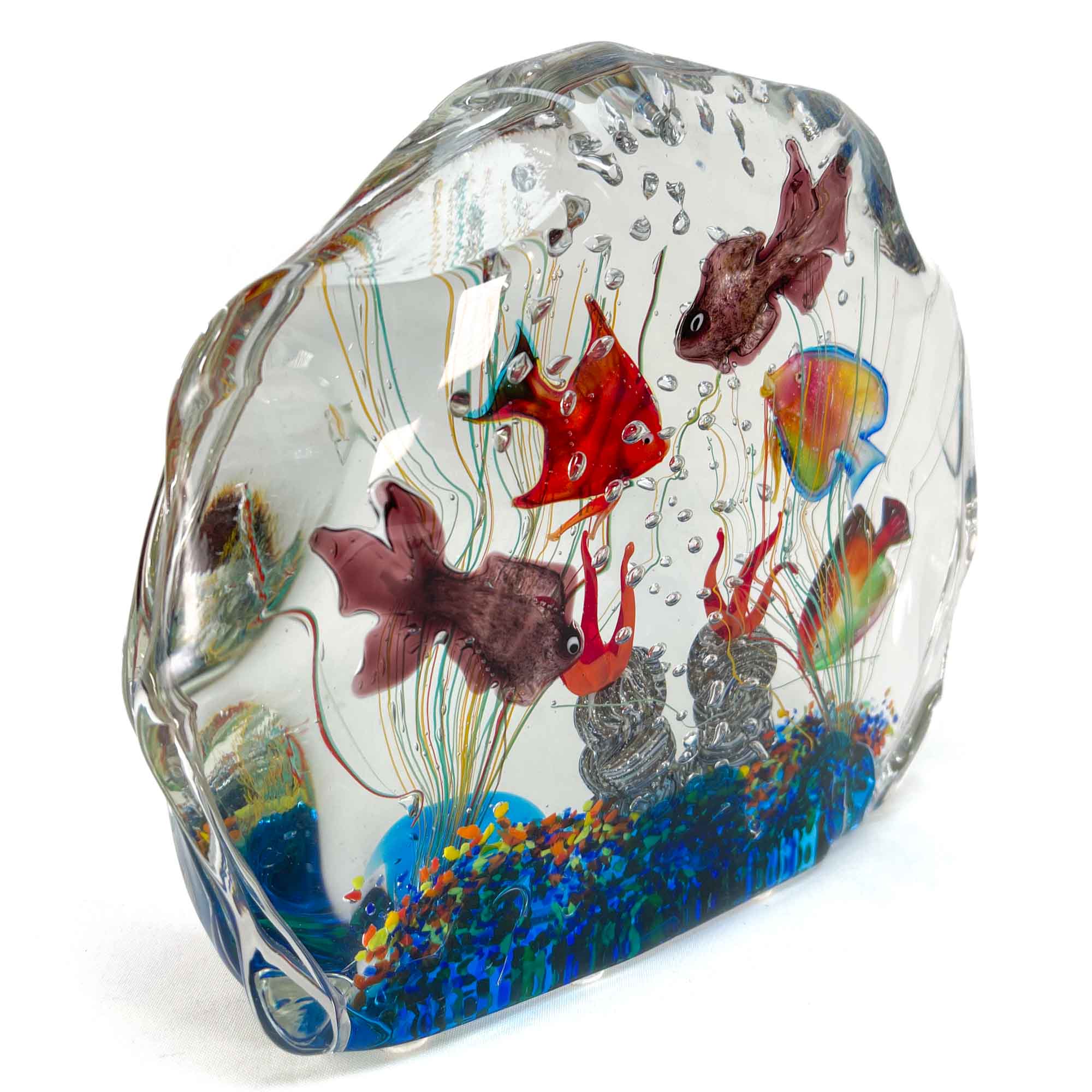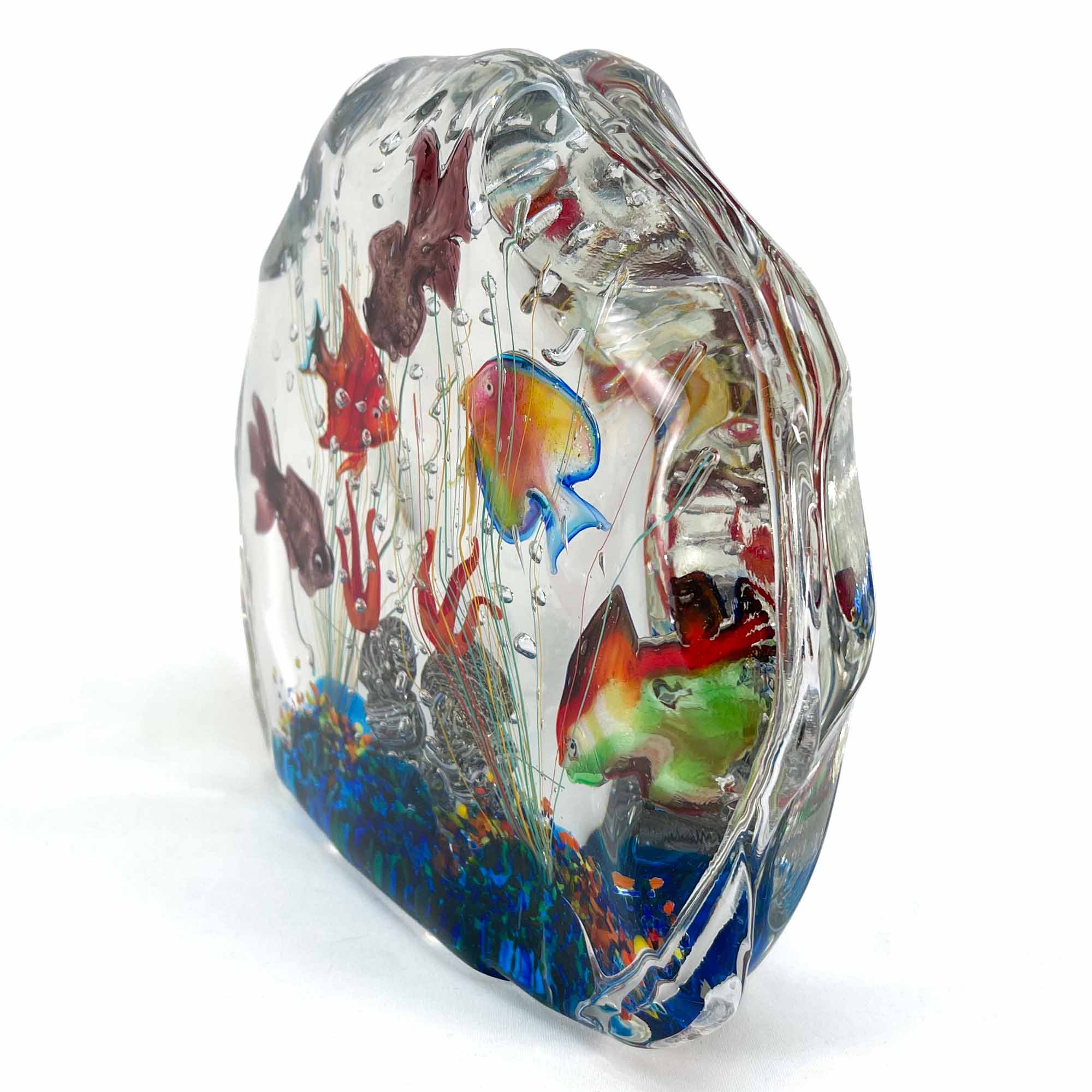 The main body is made in massello glass whereas the fish and seaweed are prepared apart and then included in the crystal body.