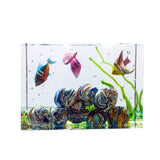 Crystal blue water, colorful fishes, and tiny air bubbles create the illusion of a living aquarium without its costly maintenance.The unique features of this refined artwork make it suitable for every room of your home, and adapt to every furniture style.