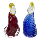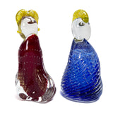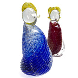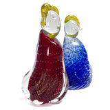 Murano glass figurines, made in red and blue crystal with inclusion of golden Leaves. The price includes both figurines.