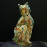 This cat is made of transparent glass in which surface are melted multicolored section of canna.