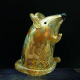 This amazing mouse is made of transparent glass in which surface are melted multicolored section of canna.