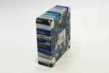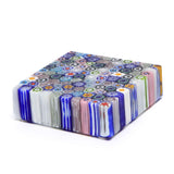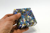 This is a mosaic made up of many pieces of colored cane hand-worked then melted together at about 1,200 degrees. After the melting they are cooled very slowly in the ovens called tempera to prevent them from cracking. Once cooled they are ground and polished by hand.