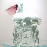 Big Murano glass sculpture of a Pelican, on a crystal pedestal. Created using Murano glass crystal and lattimo techniques. Tagliapietra's hability clearly emerges from the attention to detail and the high quality of the overall execution, despite the difficulties of working on a very heavy object.