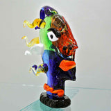 Badioli’s skills with Murano glass techniques are clearly visible in this example of fine art. The face is made in vetro massello while hot glass is later applied for the decorations. It’s the applicazione a caldo technique: details such as eyes, hair, eyebrows are added during the process while the main body and the parts that need to be put together are incandescent.