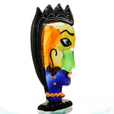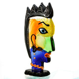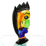 Badioli’s skills with Murano glass techniques are clearly visible in this example of fine art. The face is made in vetro massello while hot glass is later applied for the decorations. It’s the applicazione a caldo technique: details such as eyes, hair, eyebrows are added during the process while the main body and the parts that need to be put together are incandescent.