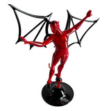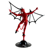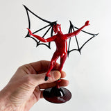 The body is intricately detailed, The devil has black wings, which are large and spread out, adding to the striking appearance of the piece.