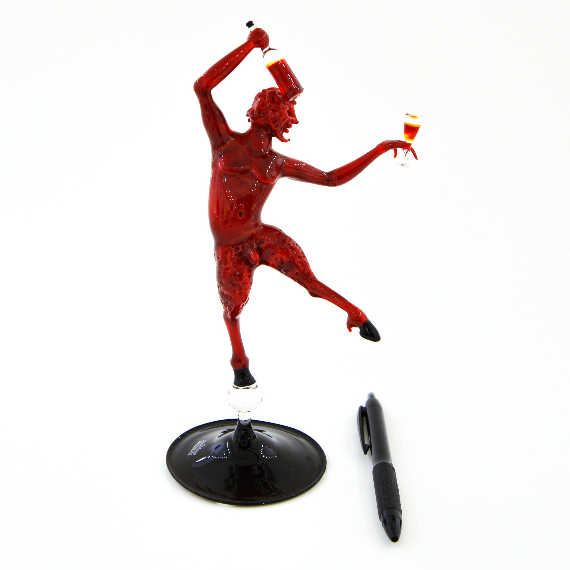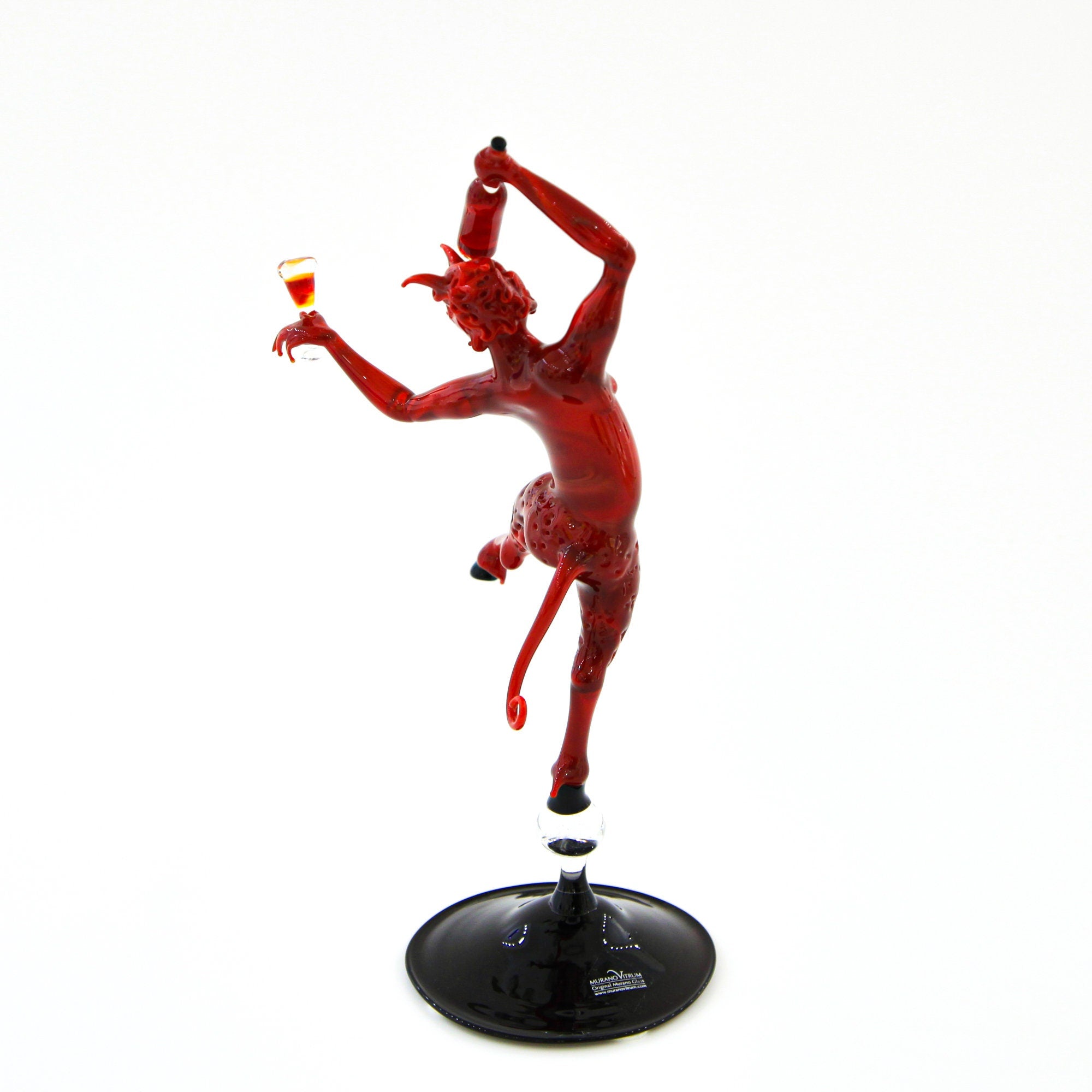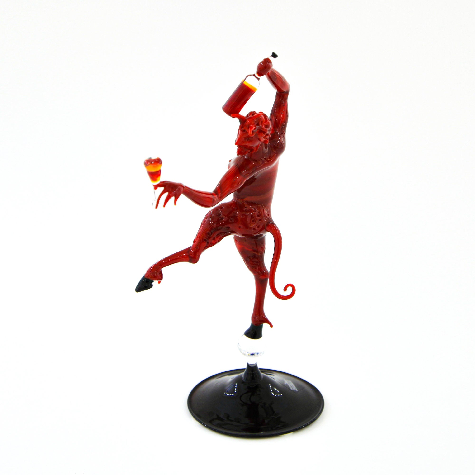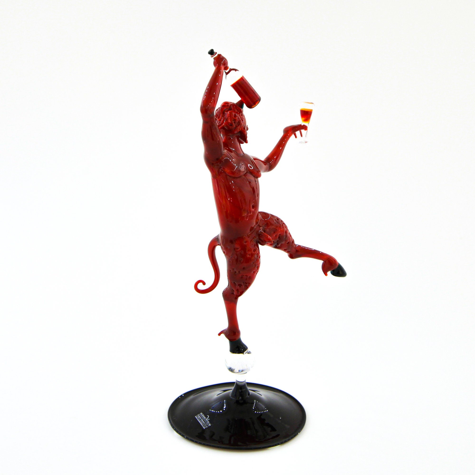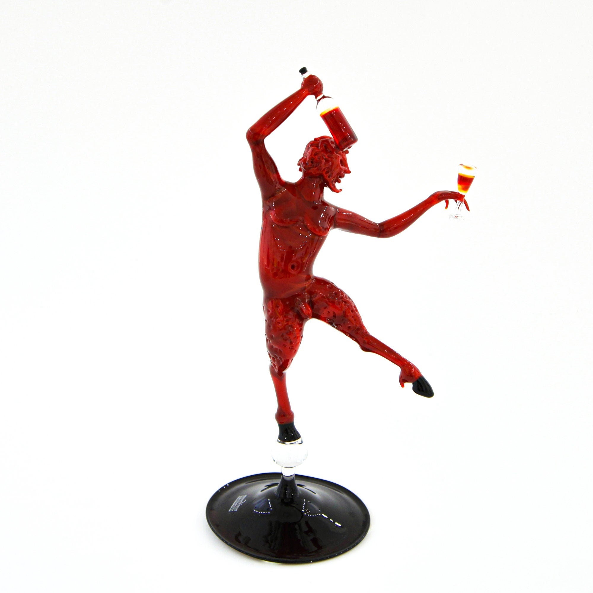 Red Faun With Wine Bottle and Glass Big Size - Murano Glass
