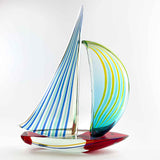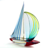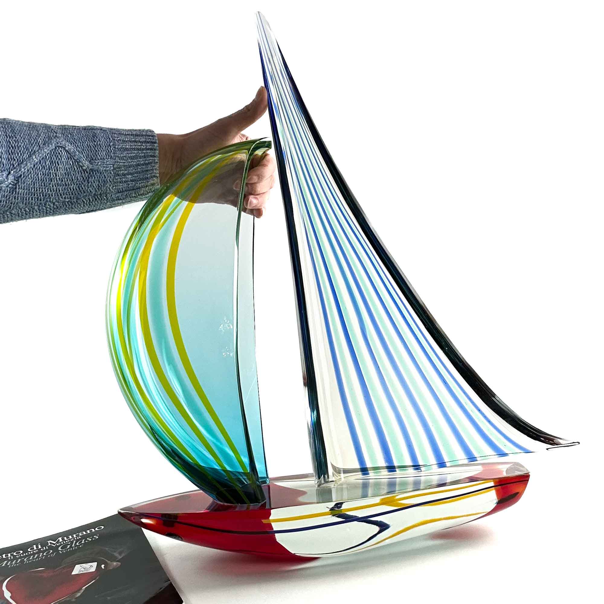 A wonderful example of Muranese art: each piece of this sailboat is handmade separately with inclusions of multicoloured canna.