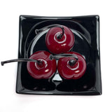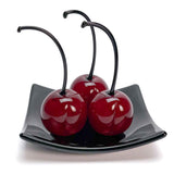 Set 3 Medium Cherries with Black Square Plate "Love and Elegance" - Murano Glass