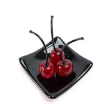 Set 3 Small Cherries with Black Square Plate "Love and Elegance" - Murano Glass