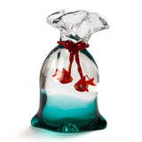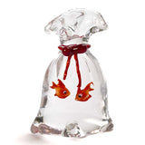 The Goldfish bag is a uniquely crafted Murano glass collectible. It is the perfect gift for those who love to collect antiques or simply for those who like to decorate their home with pieces that exude elegance. This beautiful Murano glass collectible was made using the  lume and sommerso technique.