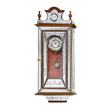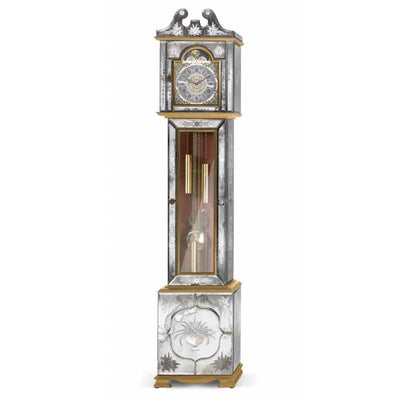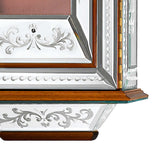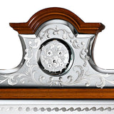 Venetian style wall clock in hand engraved mirror. Wooden details in walnut colour.