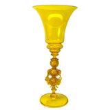 Variations in the size and shape are due to the craftsmanship method: the master glassmaker creates and decorates each cup by hand, without using molds. Each goblet is a unique piece, impossible to duplicate.
