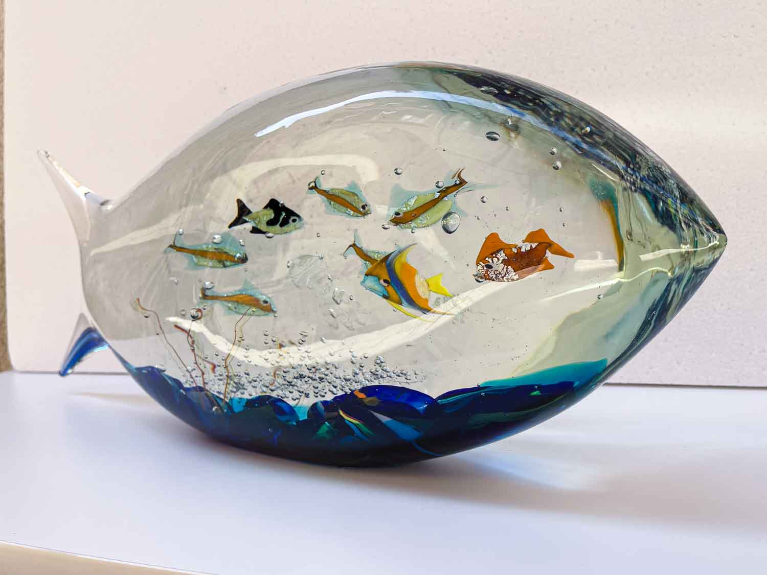This fish-shaped aquarium made of Murano glass is ideal for people looking for a decoration piece for their living room, kitchen, or dining room. This fish-shaped aquarium is extremely valuable since it's a handcrafted product and reflects centuries-old Venetian history and culture. It can be the perfect gift for your favourite colleague or a neighbour who just moved in.