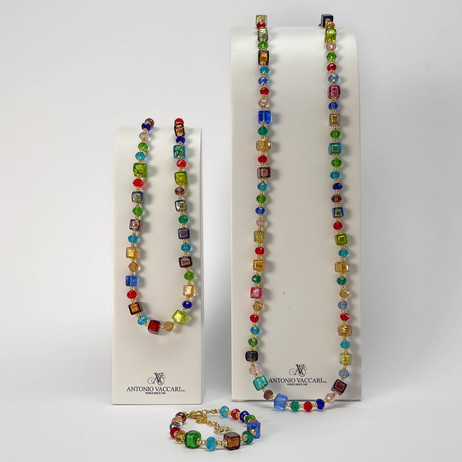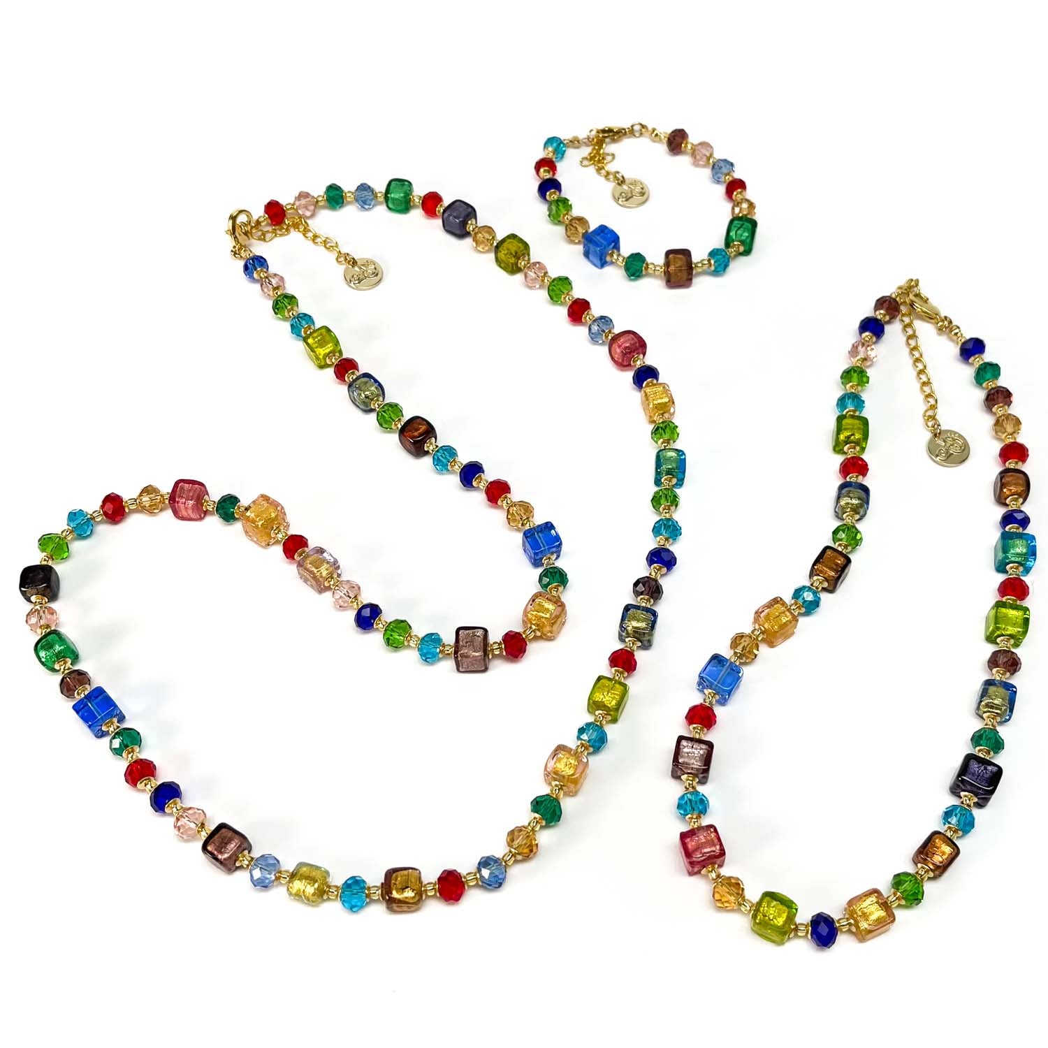 A set made with multicolor Murano glass beads.