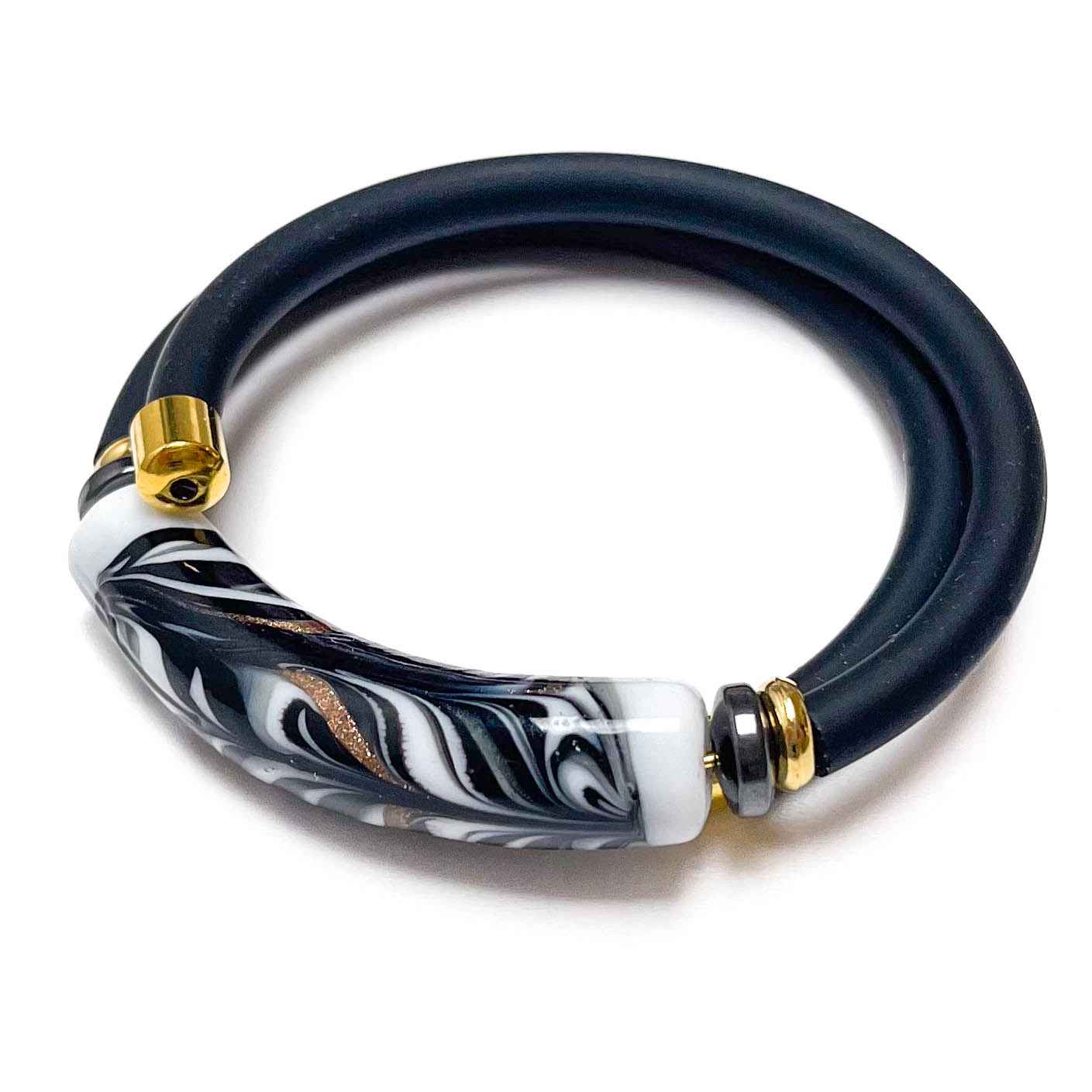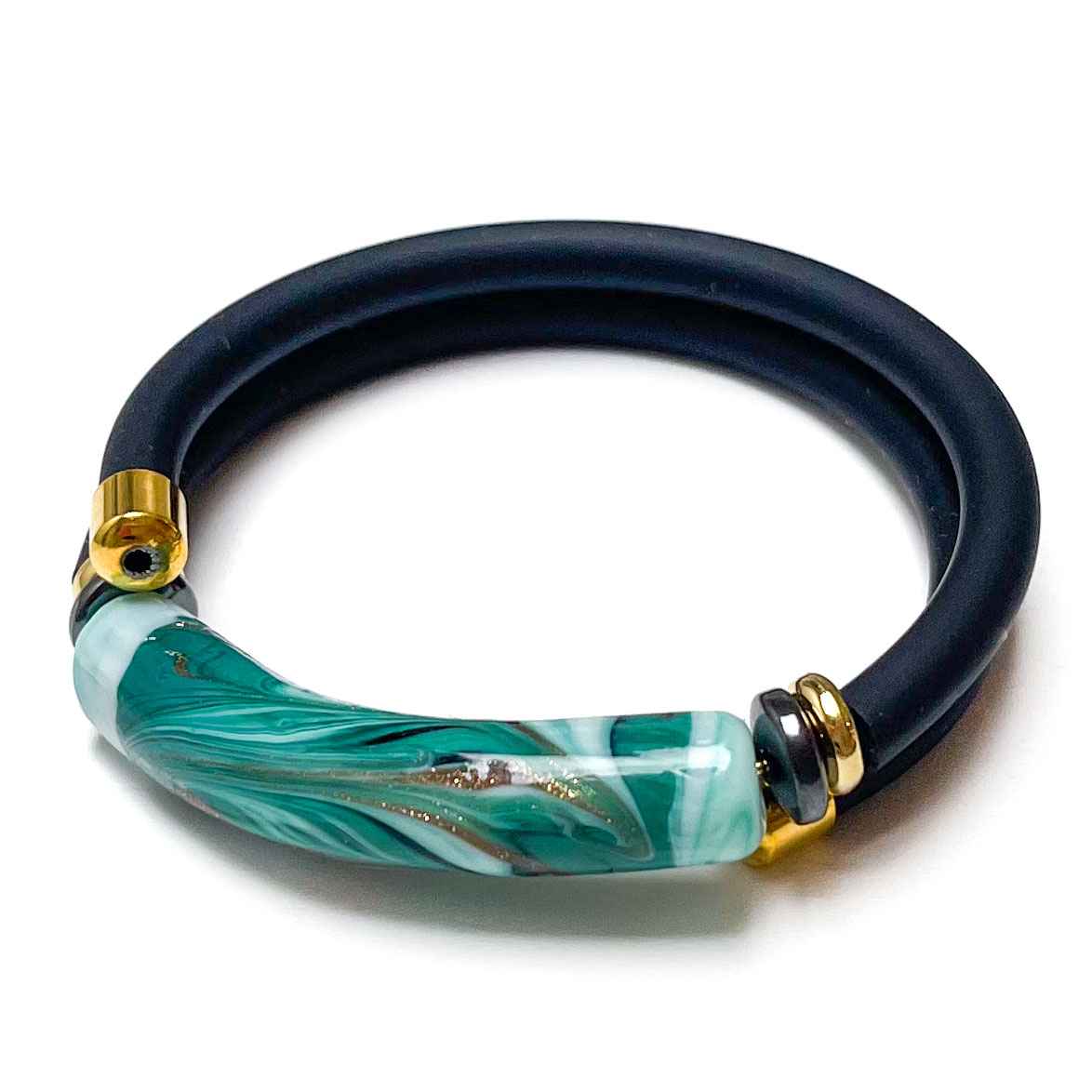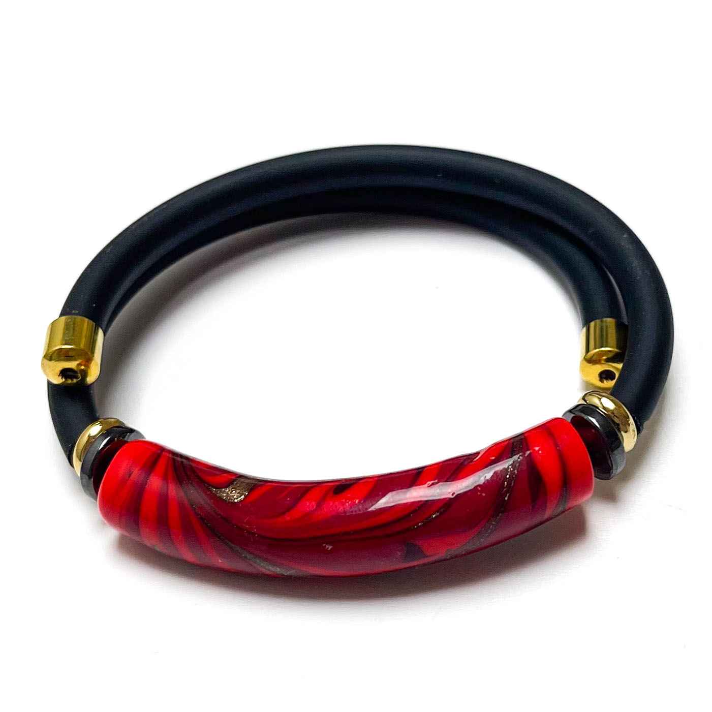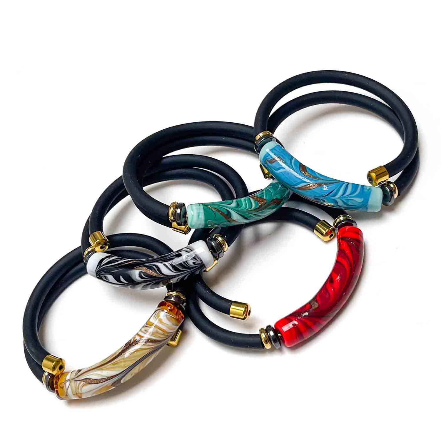 Murano glass bracelet with caucciù band. Glass bead made using the Fenicio  technique.