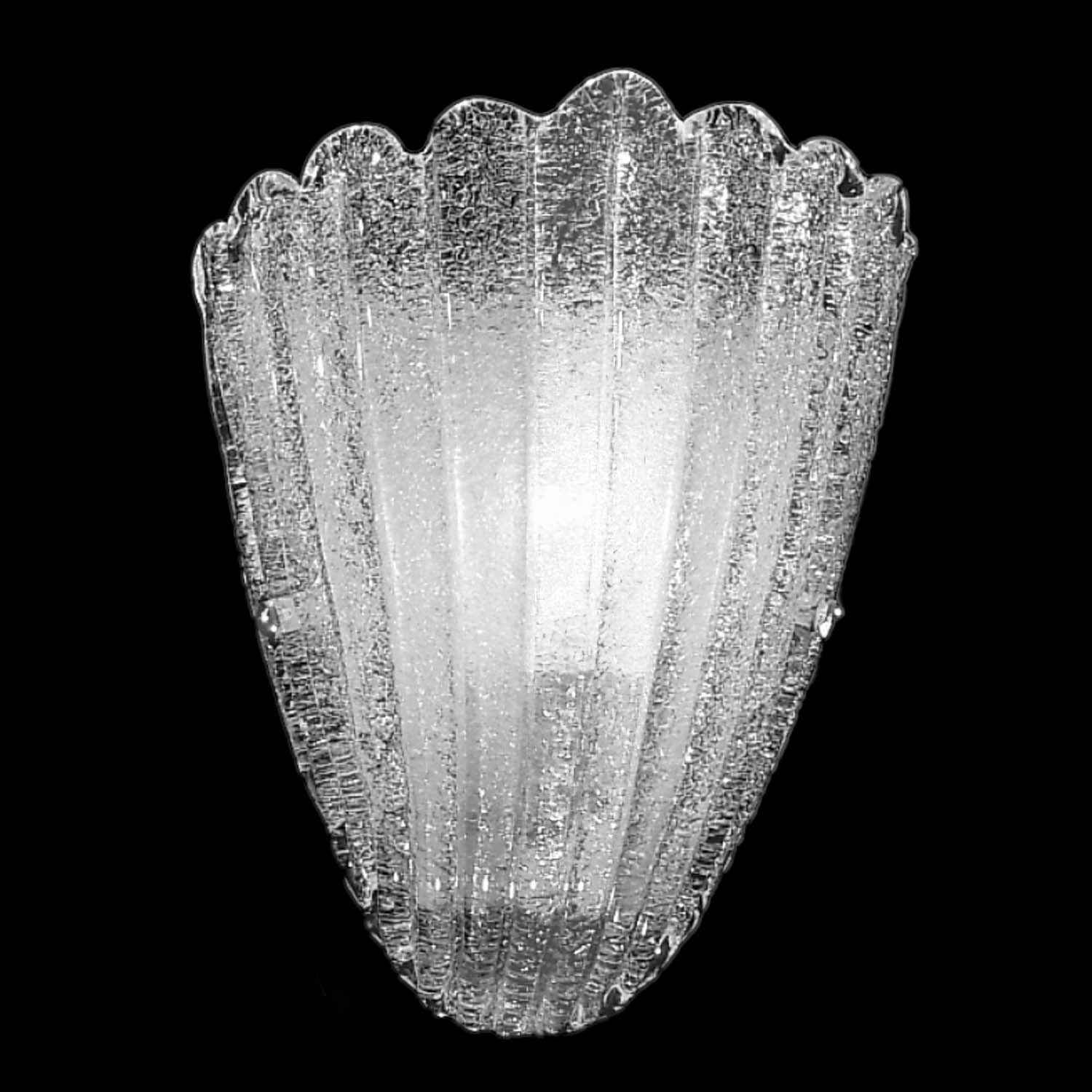To illuminate the walls with a pleasant effect and give the rooms a welcoming atmosphere, glass wall lamps are needed. Thanks to the soft light that the wall lamps or wall lamp art glass diffuse, they are a fundamental element in the lighting of the house. To give a touch of class both in the classic style home and in the modern home, in our catalog you will find blown glass appliques made in Italy by expert craftsmen. The most prestigious of these are the Murano glass appliques, authentic small masterpieces that you can now choose from among our glass wall lamps.