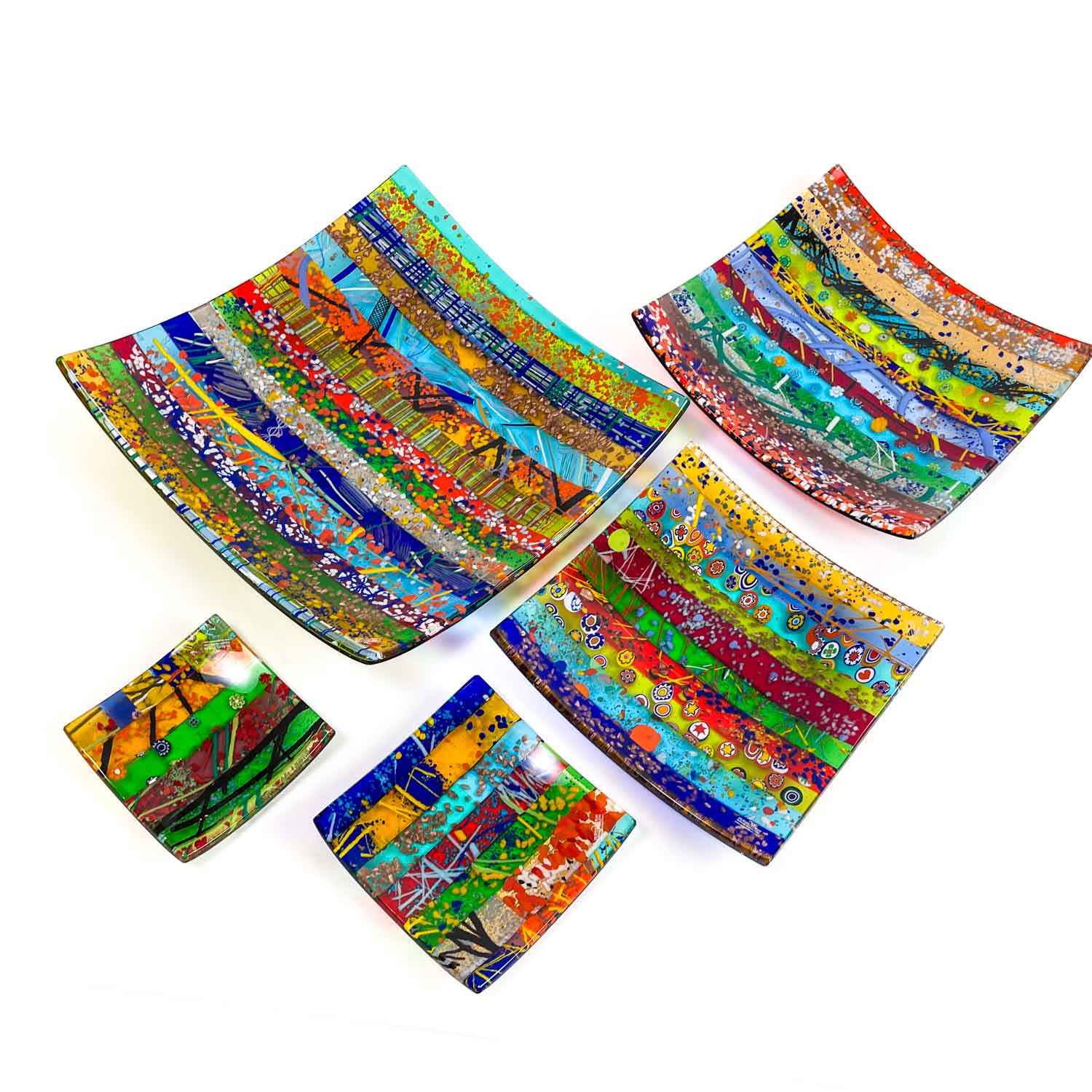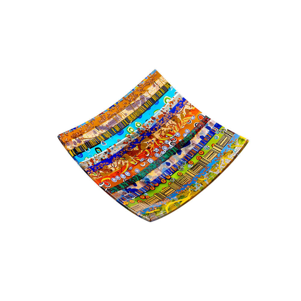The magic Oriental colours have been trapped inside gorgeous murrina tiles and fused together: this creation is incredibly beautiful and a stricking eye-catcher with character. Handmade in our atelier in Venice using custom designed murrine and fusing technique.